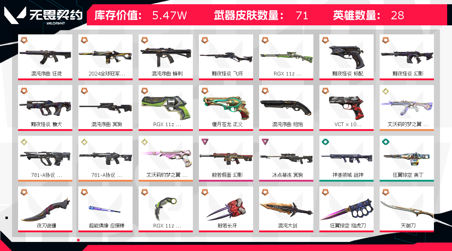 • 皮肤资产价值: 54730