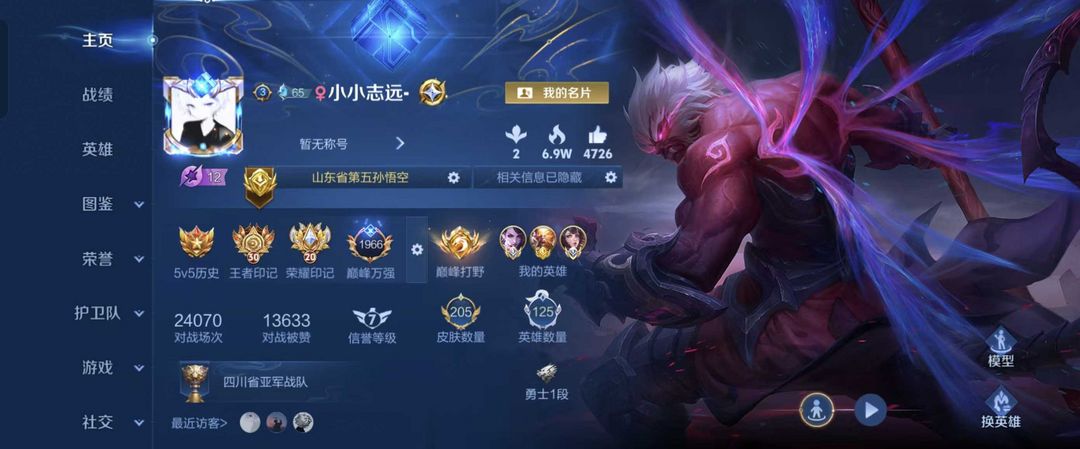 立即租号首页 > 租号大厅 > 王者荣耀 > 标题写明区服/QQ > 现巅峰万强、现在榜②省标孙悟空、阿轲、市标60段打野丨6663名闪电框【正式服【禁巅峰】幽冥火、蛇年
