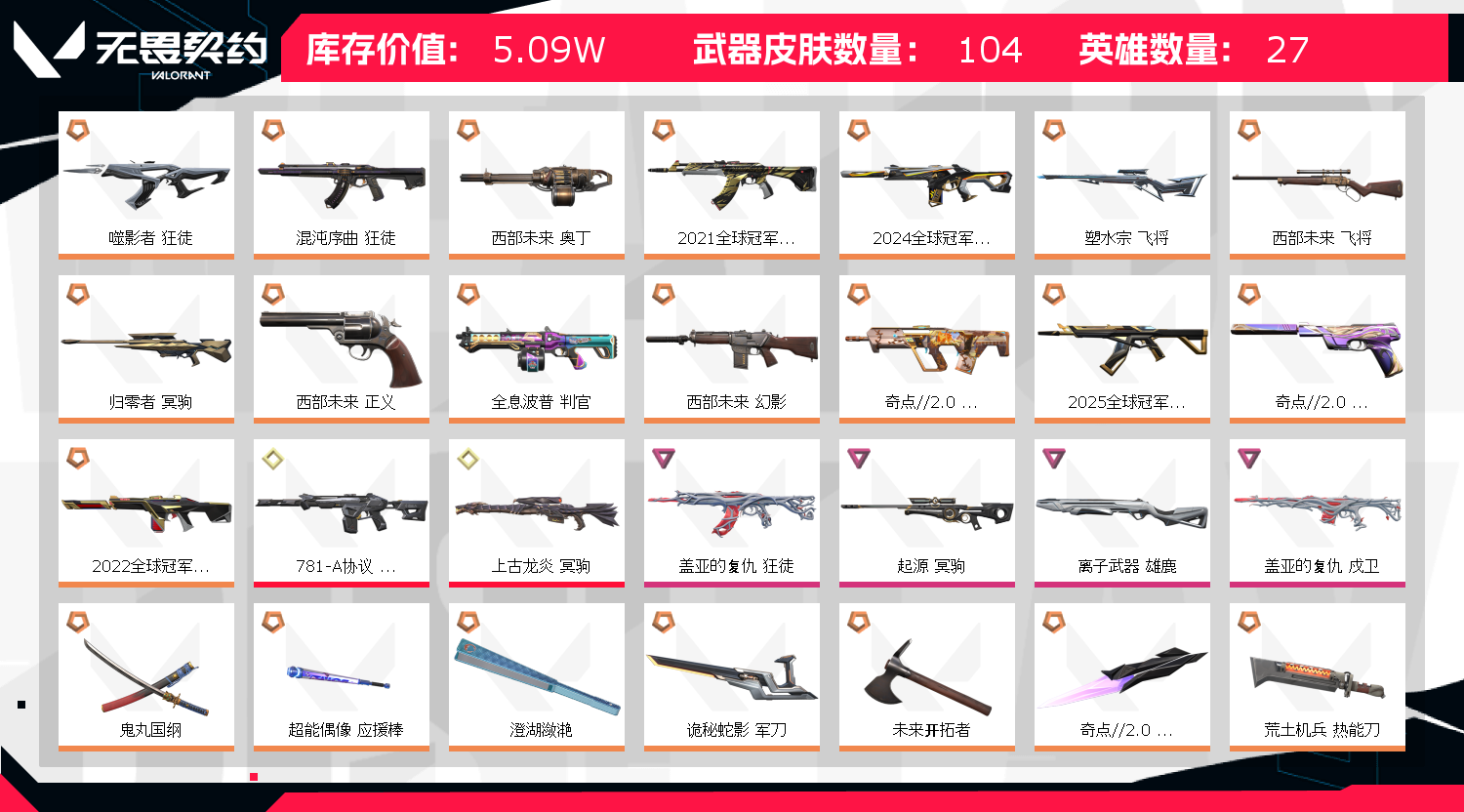 首页 > 租号大厅 > 无畏契约-wegame > wegame/wegame > 超多冠军,25ak21ak22m24套奇点2.0套西部套鬼丸刀混沌盖亚噬影者狮子781,归零古龙忍者