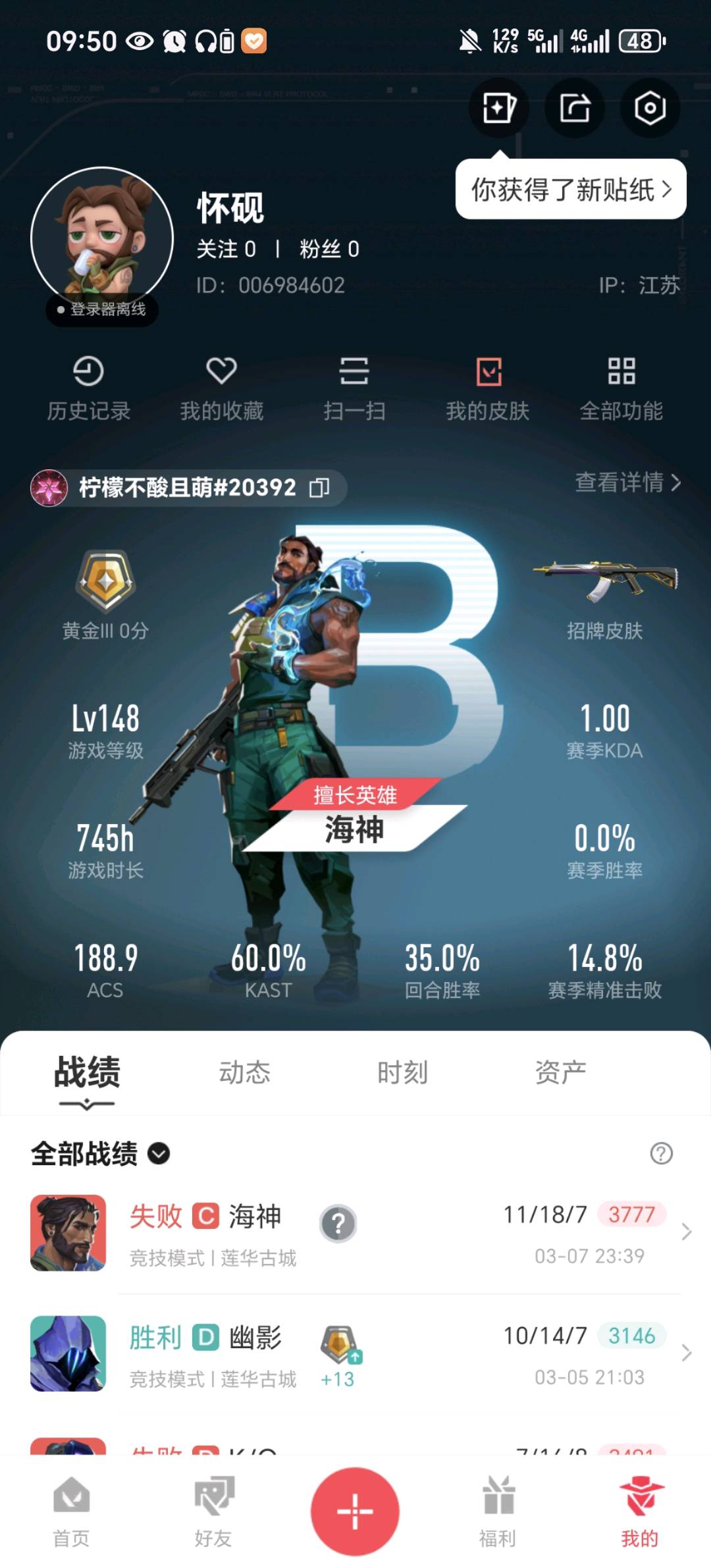 • 游戏区服:无畏契约-wegame / wegame / wegame