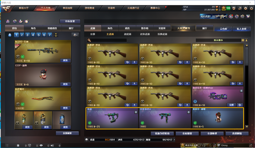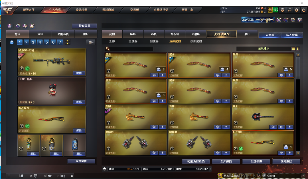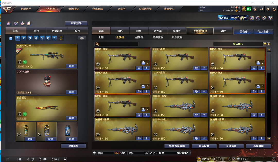 幻神三件套,爆破生化双全装,锋芒蝶刃,六烈龙+蝴蝶,6盘龙盘龙+炼狱,多音效卡,详细看截图;炽芒蝶刃,电竞教官-云悠悠,RPK-盘龙,QBZ03-金色蔷薇,M200-幻神,