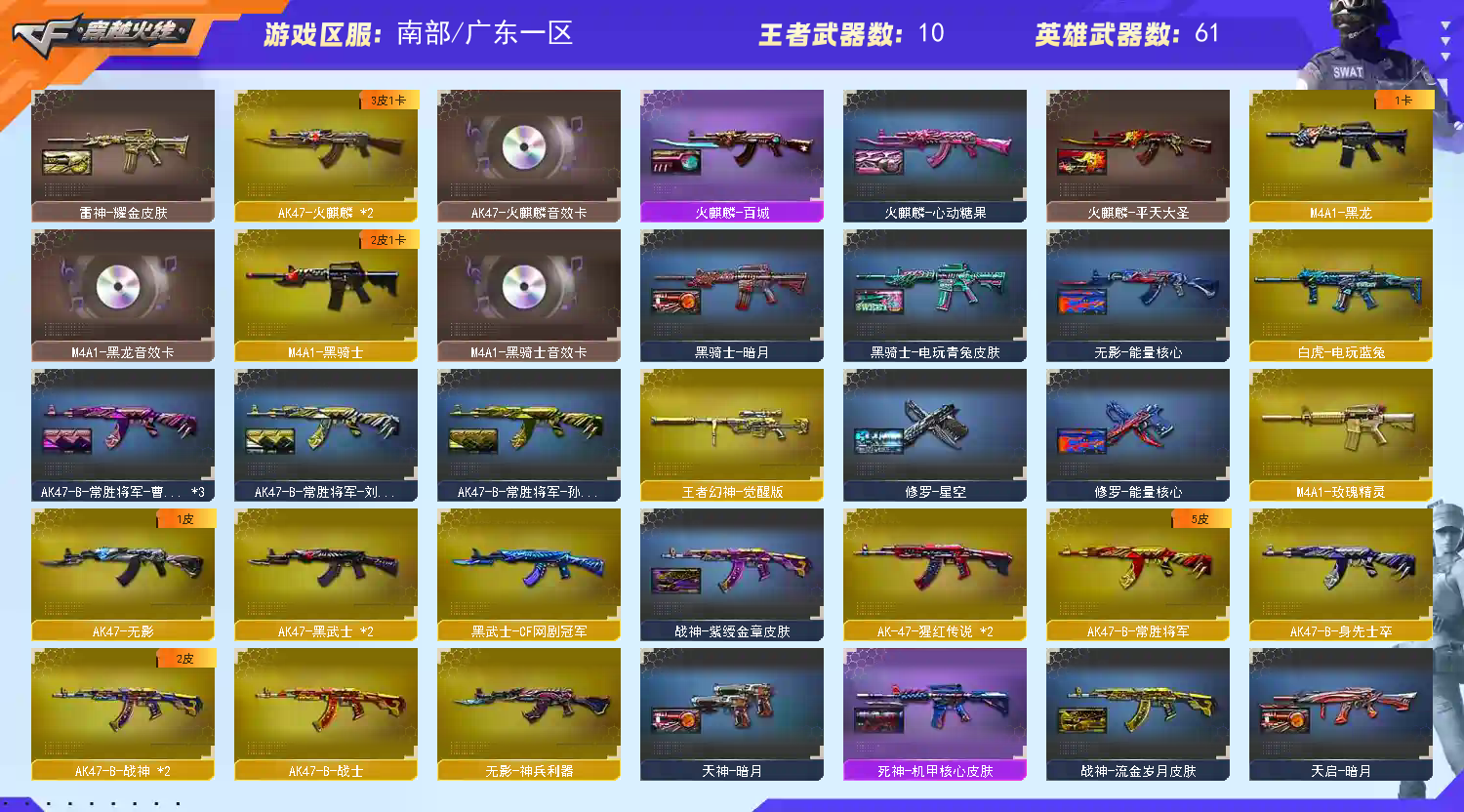 • 游戏区服:穿越火线 / 南部 / 广东一区