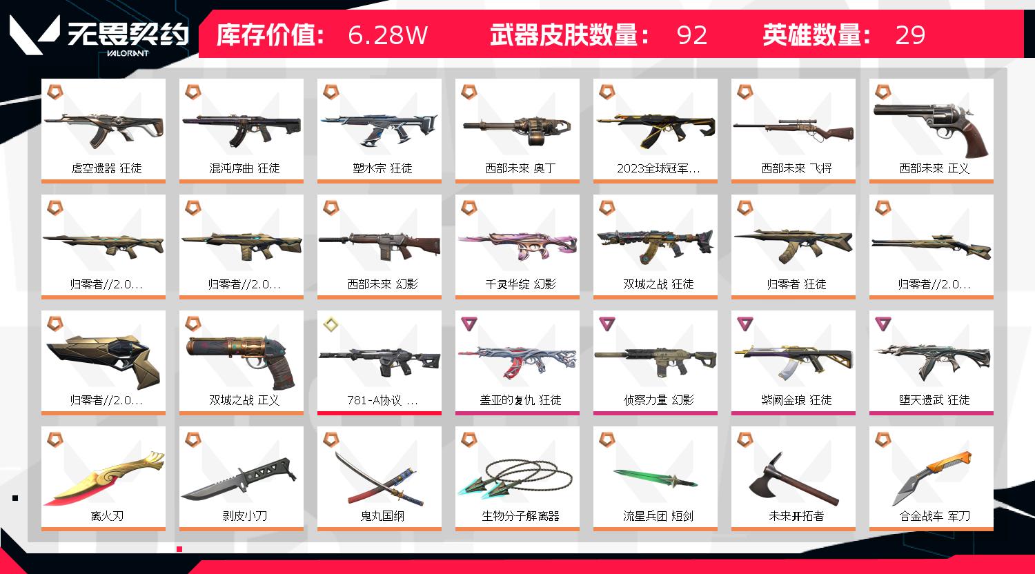 首页 > 租号大厅 > 无畏契约-wegame > wegame/wegame > 冻结图6.5W库太刀离火刃❤️23冠军套❤西部未来套❤️虚空遗器❤️塑水宗盖亚狮子AK归零者双城套