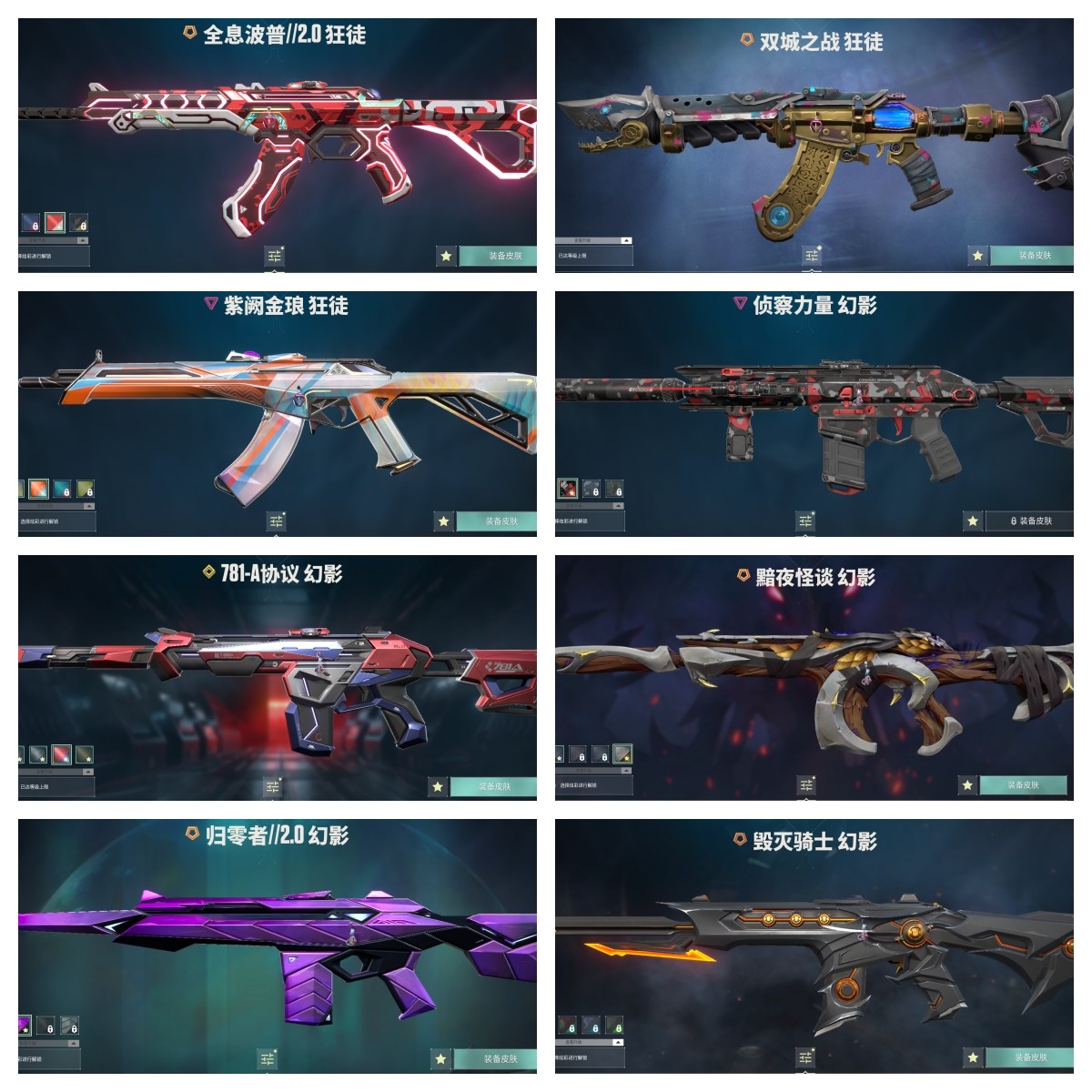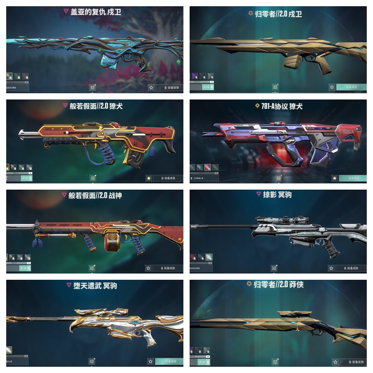 【拥有步枪】光明哨兵-狂徒,混沌序曲-狂徒,双城之战-狂徒,毁灭骑士-幻影,黯夜怪谈-幻影,全息波普//2.0-狂徒,781-A协议-獠犬,781-A协议-幻影,艾沃莉的梦之翼-狂徒,紫阙金琅-狂徒,盖亚的复仇-戍卫,盖亚的复仇-狂徒,侦察力量-幻影,冰点凝冻-狂徒,海洋之星-狂徒,神圣领域-獠犬,神圣领域-幻影,荒土机兵-狂徒,超限闪存-幻影,超能偶像-戍卫,超能偶像-狂徒,流星兵团-狂徒,珍珠棘贝-幻影,珍珠棘贝-戍卫,钢轨卫士-狂徒,钢轨卫士-戍卫,噬源兽防卫工程-幻影,弧光异彩-獠犬,弧光异彩-狂徒,月球哨兵-戍卫,纳米-幻影,逆冲蛮牛-戍卫,逆冲蛮牛-獠犬,模拟赫兹-獠犬,浮光跃金-戍卫,聚之力-幻影,采蜜小蜂队-獠犬,战术熊与伙伴们-戍卫,复古浪潮-獠犬,战术小伙伴-獠犬,战术小伙伴-幻影,彩梦之城-戍卫,