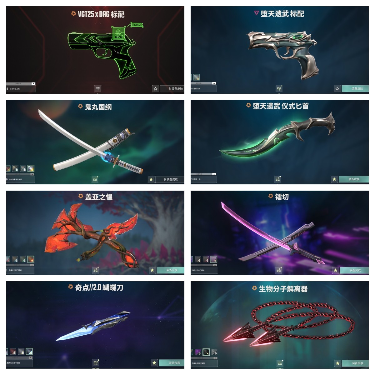 【拥有套装】堕天遗武套装(堕天遗武-狂徒,堕天遗武-冥驹,堕天遗武-骇灵,堕天遗武-标配,堕天遗武-仪式匕首)归零者2.0套装(归零者//2.0-幻影,归零者//2.0-戍卫,归零者//2.0-莽侠,归零者//2.0-正义,生物分子解离器)般若假面2.0套装(般若假面//2.0-狂徒,般若假面//2.0-獠犬,般若假面//2.0-战神,般若假面//2.0-狂怒,鬼丸国纲)
