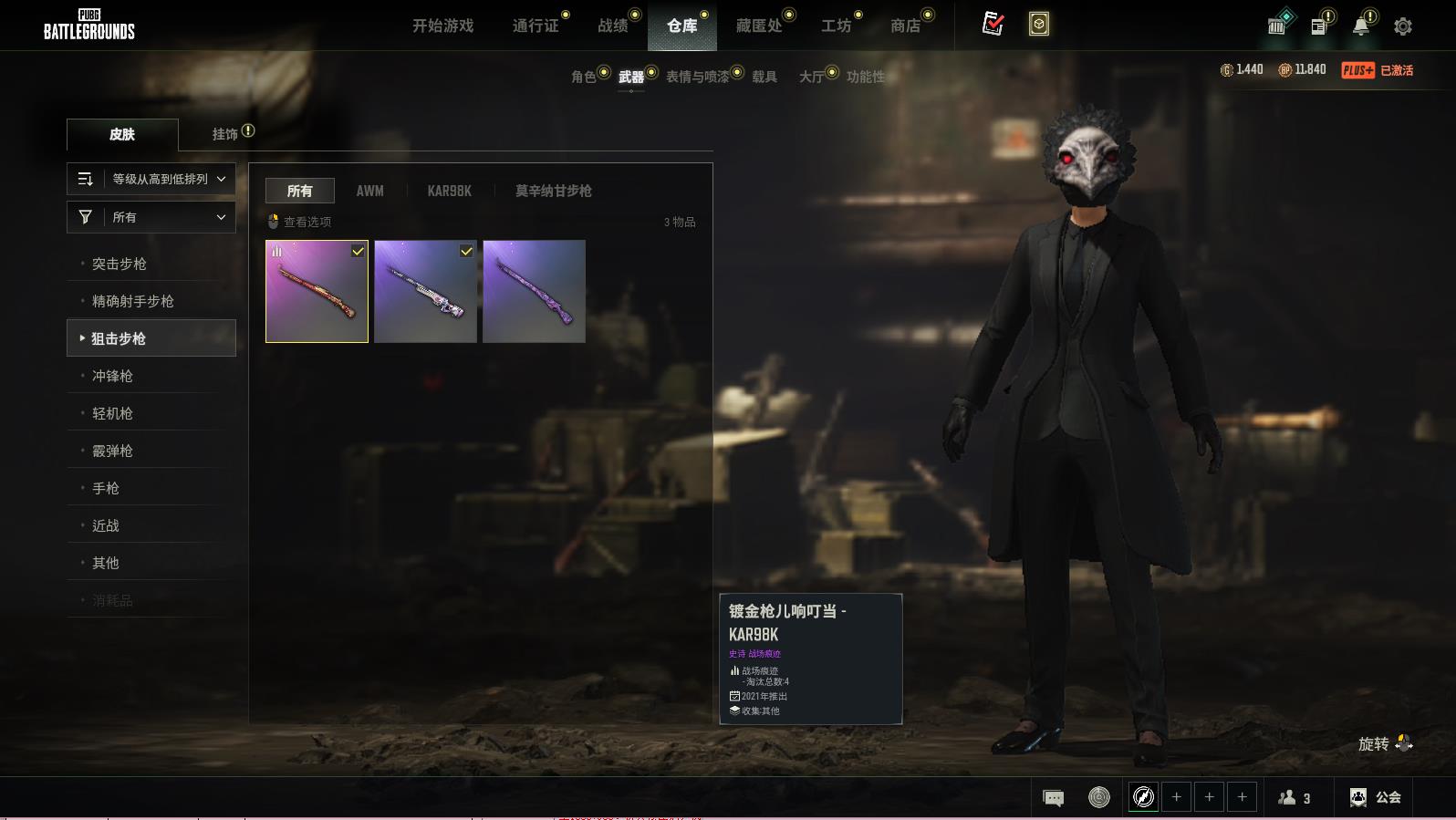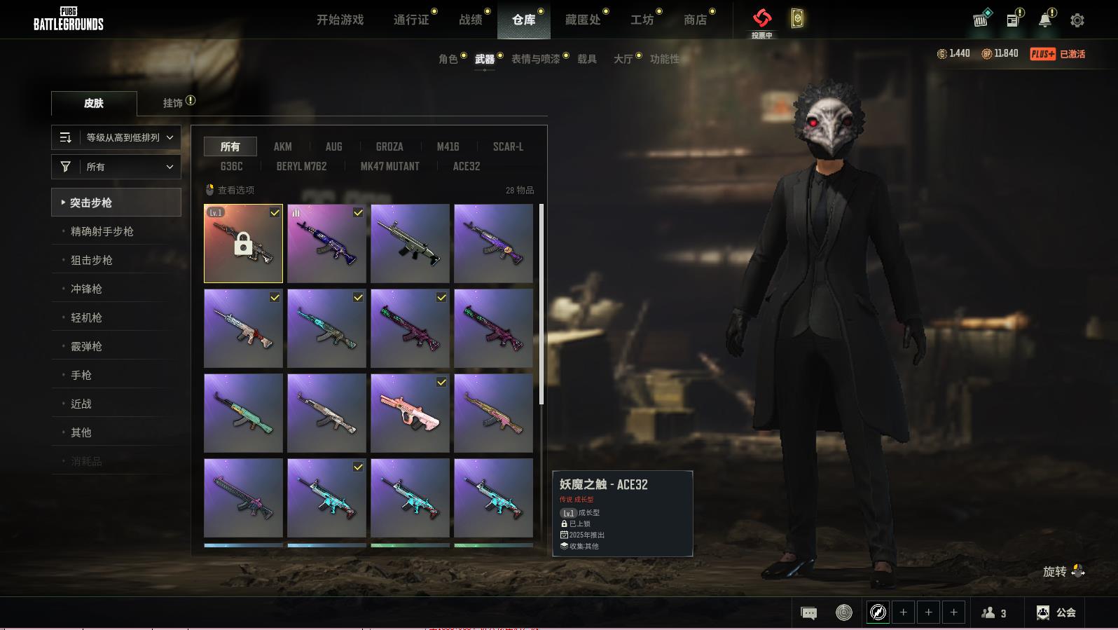 PUBG豪华版绝地求生可排位,妖魔之触-ACE32;烈日灼烧-S1897;湮灭-BERYLM762;PGC.2022王牌登场-SLP;破碎元素-MINI14;镀金枪儿响叮当-KAR98K;镀银-SCAR-L;魔女之力-BEPYLM762;雪国风光-M416;灵魂枷锁-AKM;灵魂枷锁-MK47MUTANT;鎏金色落叶-AKM;大理石宝藏-AKM;彩糖蛋糕-AUG;魔力甜心萨莉的挚友-AKM;心跳掠夺者-MK47MUTANT;G-DRAGON-SCAR-L
