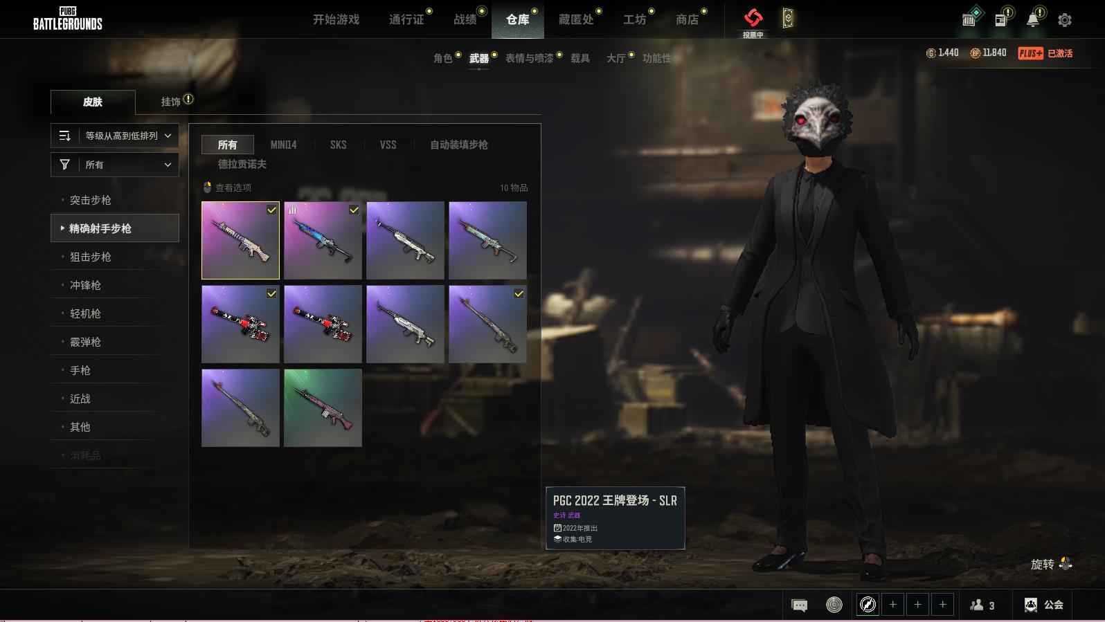 PUBG豪华版绝地求生可排位,妖魔之触-ACE32;烈日灼烧-S1897;湮灭-BERYLM762;PGC.2022王牌登场-SLP;破碎元素-MINI14;镀