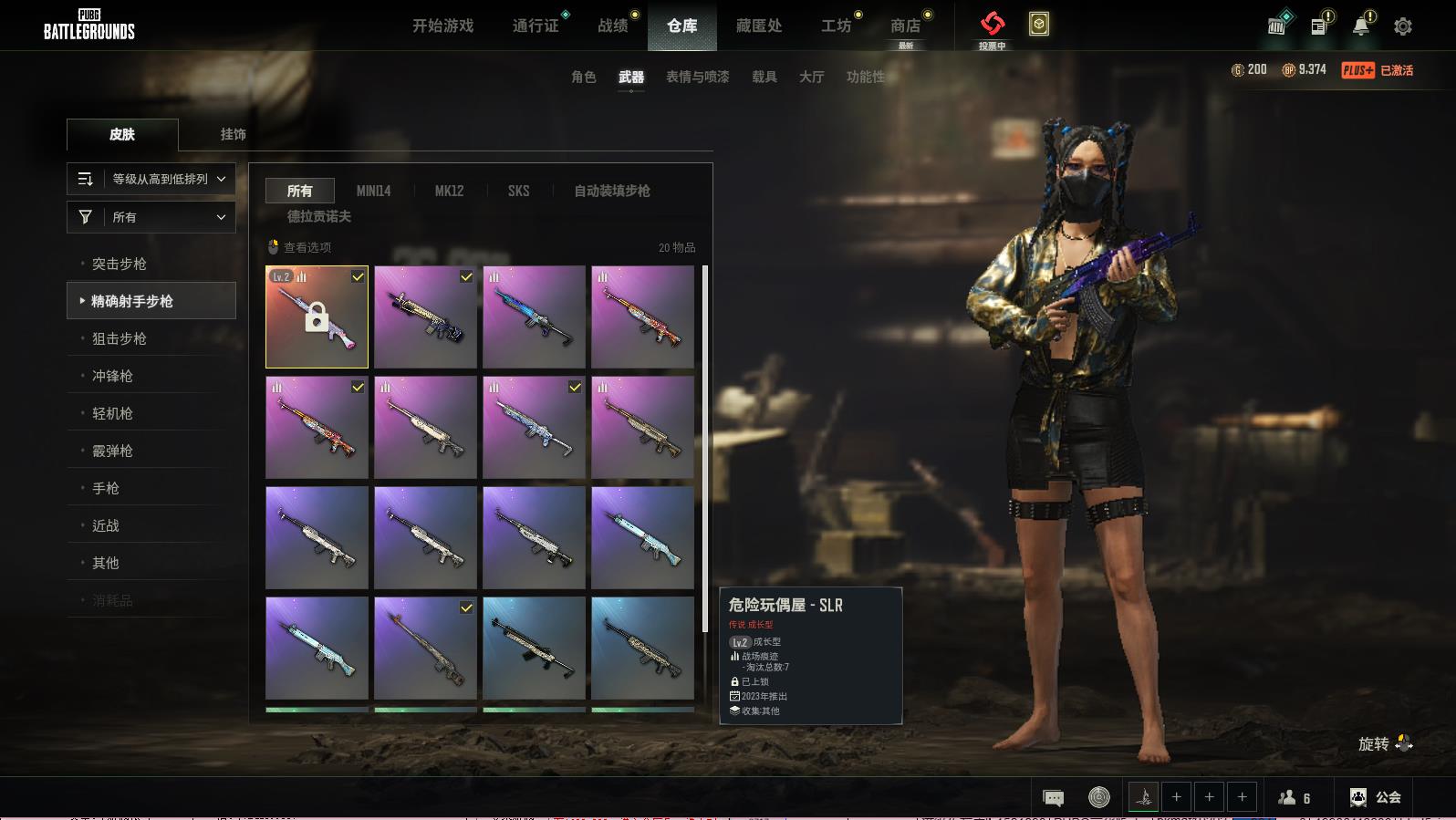 PUBG豪华版满级生存可排位,危险玩偶屋-SLRLv.2;破碎元素-AKM;湮灭-BERYLM762;PGC2023皇冠宝石-MK12;破碎元素-MINI14;