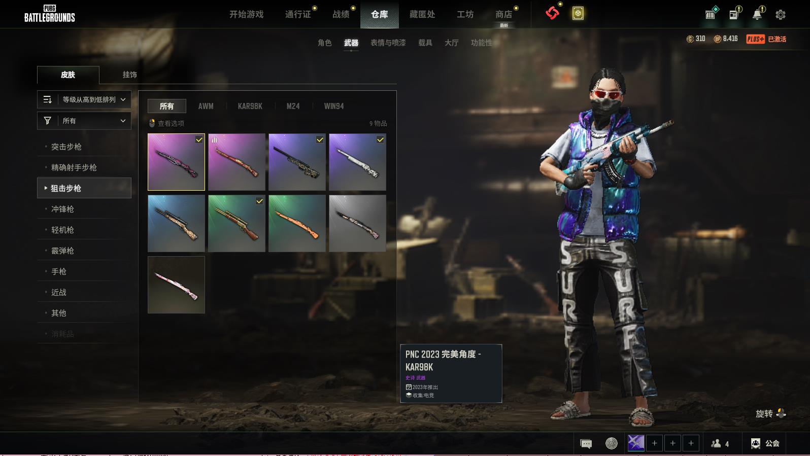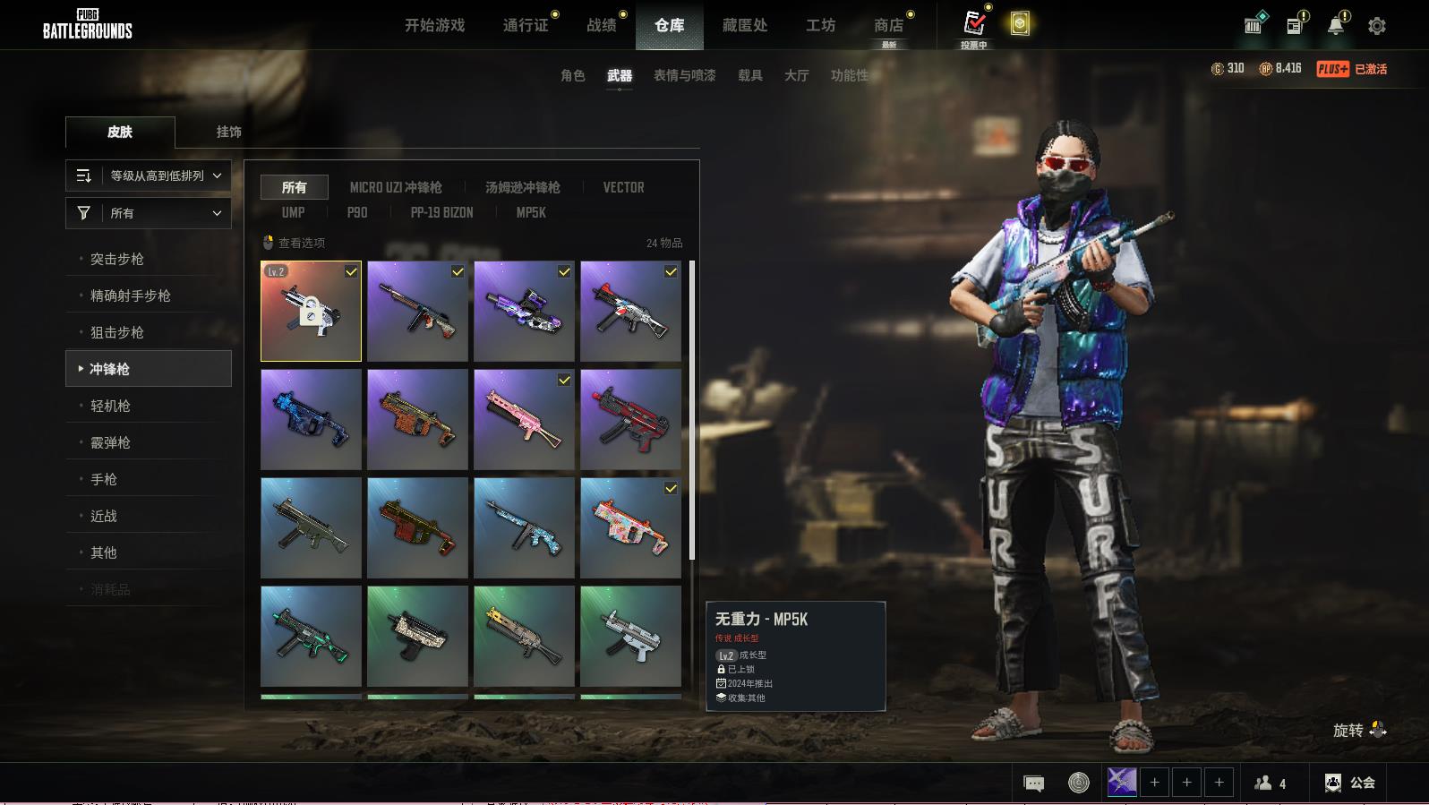 PUBG豪华版满级生存可排位,妖魔之触-ACE32Lv2-197;魔咒之力-MK12;无重力-MP5K;破碎元素-AKM;湮灭-BERYLM762;破碎元素-MINI14;赛博危机-SLR;蒸汽计量表-SKS;PNC2023完美角度-KAR98K;镀金枪儿响叮当-KAR98K;三重彩-SCAR-L;镀金-GROZA;分形几何-0BZ;多彩科技猫-AUG;雪国风光-M416;山花烂漫-GPOZA;鲜花之力-AKM;鎏金色落叶-MK47MUTANT;大理石宝藏-AKM