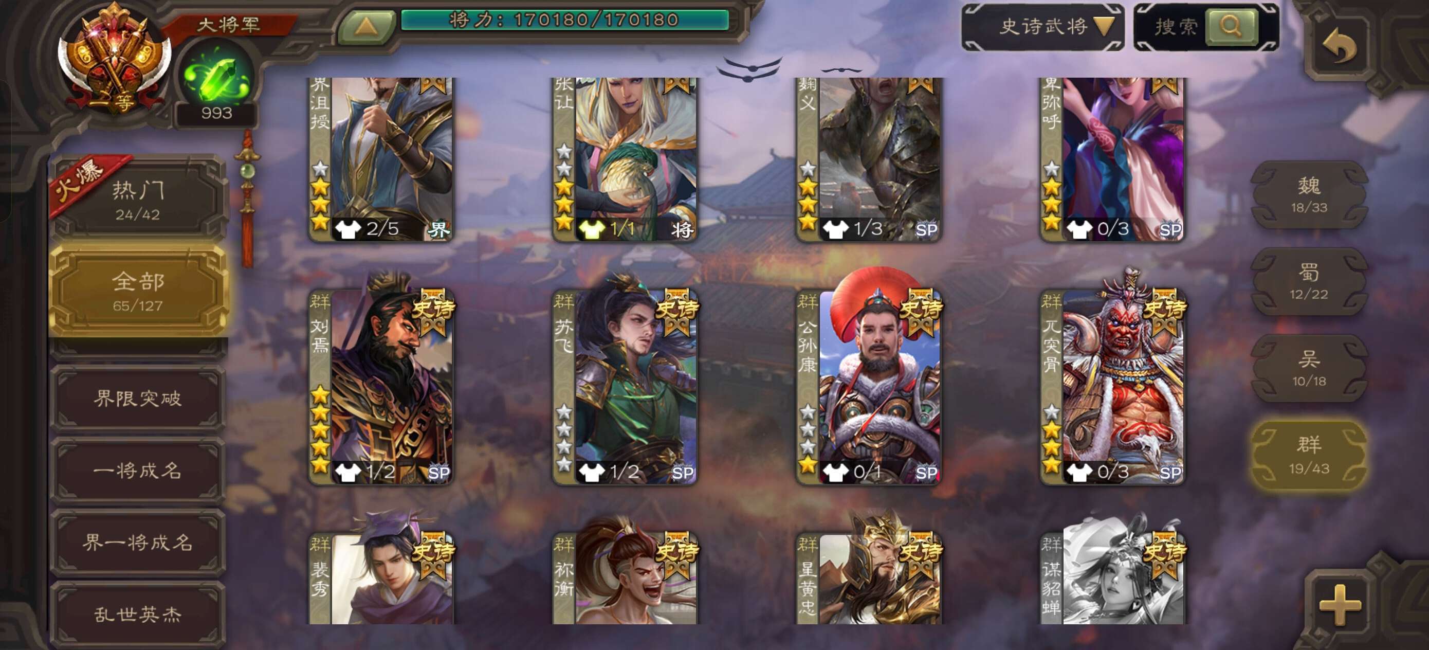 【移动互通版】v11一等大将军⭐逃跑关小黑屋⭐65史诗58动态皮⭐神郭嘉神荀彧刘焉谋曹皮文鸯谋黄盖祢衡界沮授