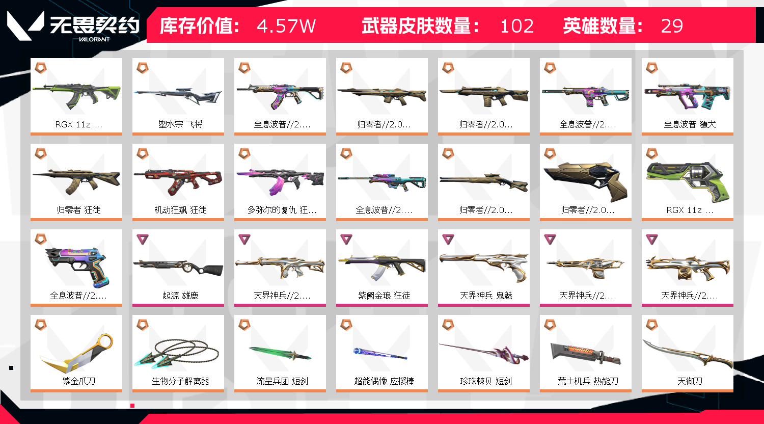 • 武器皮肤数量: 102