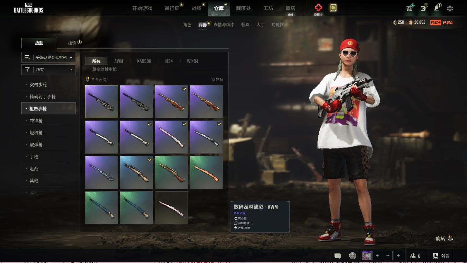 PUBG豪华版满级生存可排位,烈日灼烧-S1897;PNC2023完美角度-ACE32;破碎元素-AKM;自动化咒文-QBZ;一击撕裂者-S1897;数码沙漠迷彩-M416;镀金-GROZA;鎏金王朝-REPVLM762;鎏金王朝-087;分形几何-G36C;分形几何-0BZ;多彩科技猫-AUG;山花烂漫-GPOZA;鲜花之力-AKM;地狱火-M416