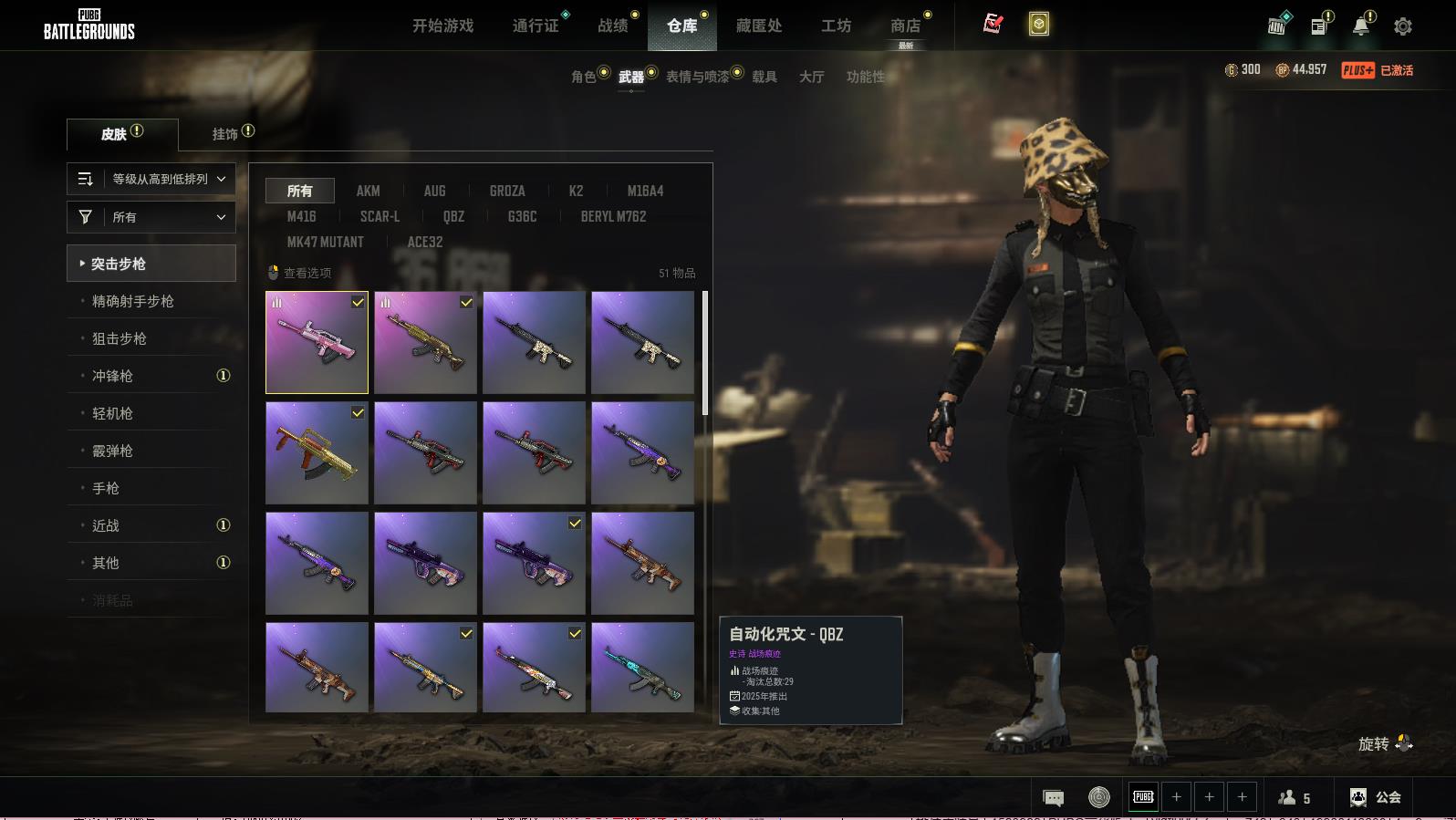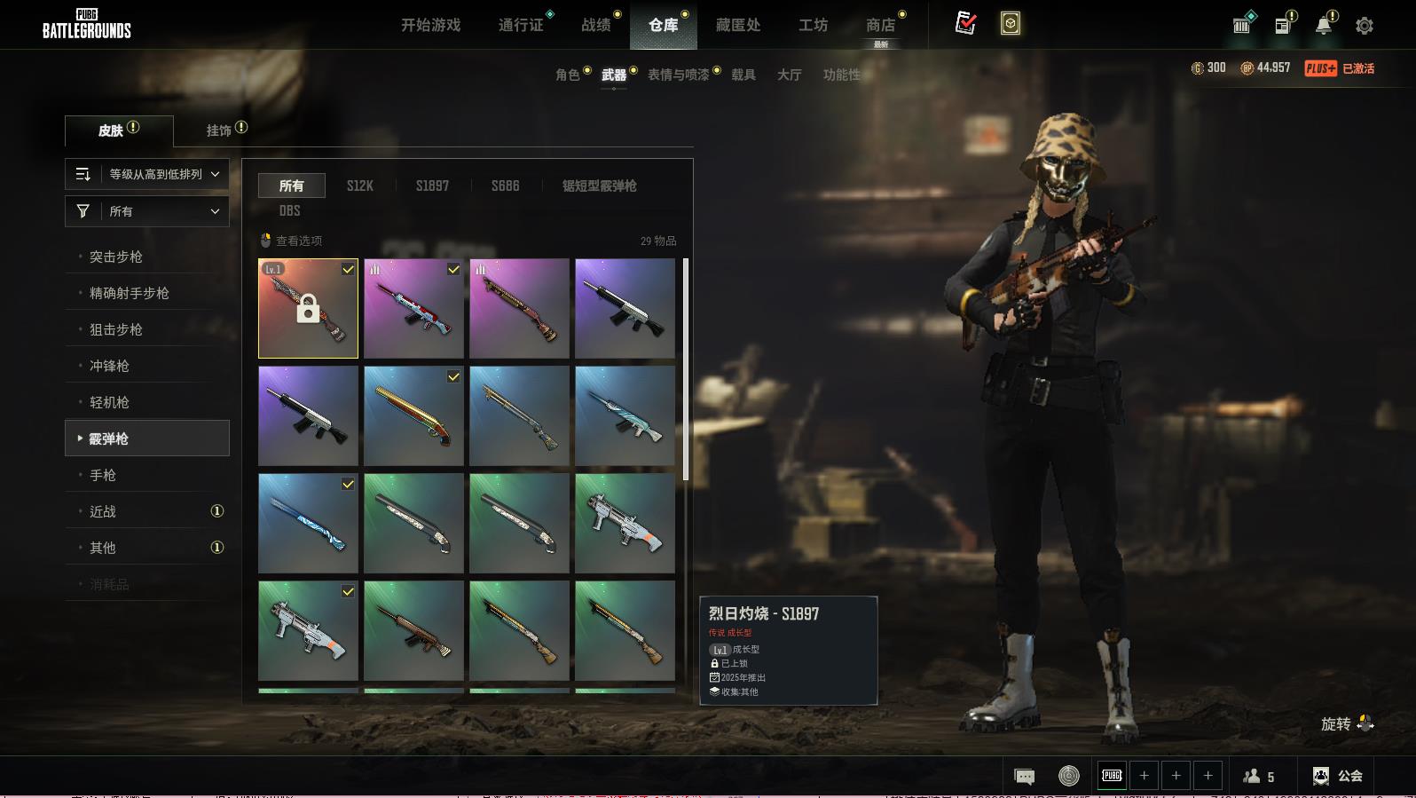 PUBG豪华版满级生存可排位,烈日灼烧-S1897;自动化咒文-QBZ;黄金齿轮-BERYLM762;PGC2023皇冠宝石-MK12;十字军-SKS;夺目寒光-SKS;无信号-S12K;一击撕裂者-S1897;数码沙漠迷彩-M416;镀金-GROZA;鎏金王朝-087;魔女之力-BEPYLM762;多彩科技猫-AUG;补丁-SCAP-L;PGC2021群雄逐鹿-M416;竞速之道-AKM;灵魂枷锁-AKM