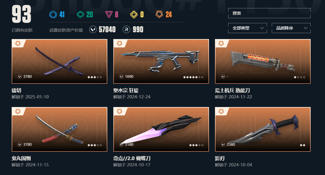 首页 > 租号大厅 > 无畏契约-wegame > wegame/wegame > 极品号✨神话挂饰✨24冠军套✨黯夜怪谈套✨掠影套✨镭切鬼丸显卡3.0爪✨混沌塑水宗狂徒✨EDG标配