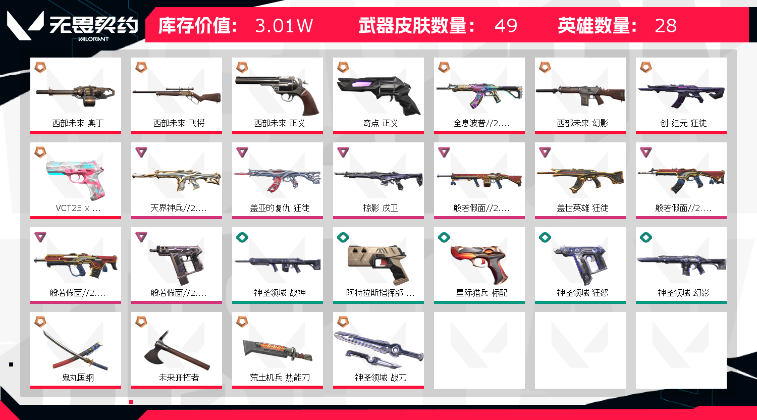 • 皮肤资产价值: 30100
