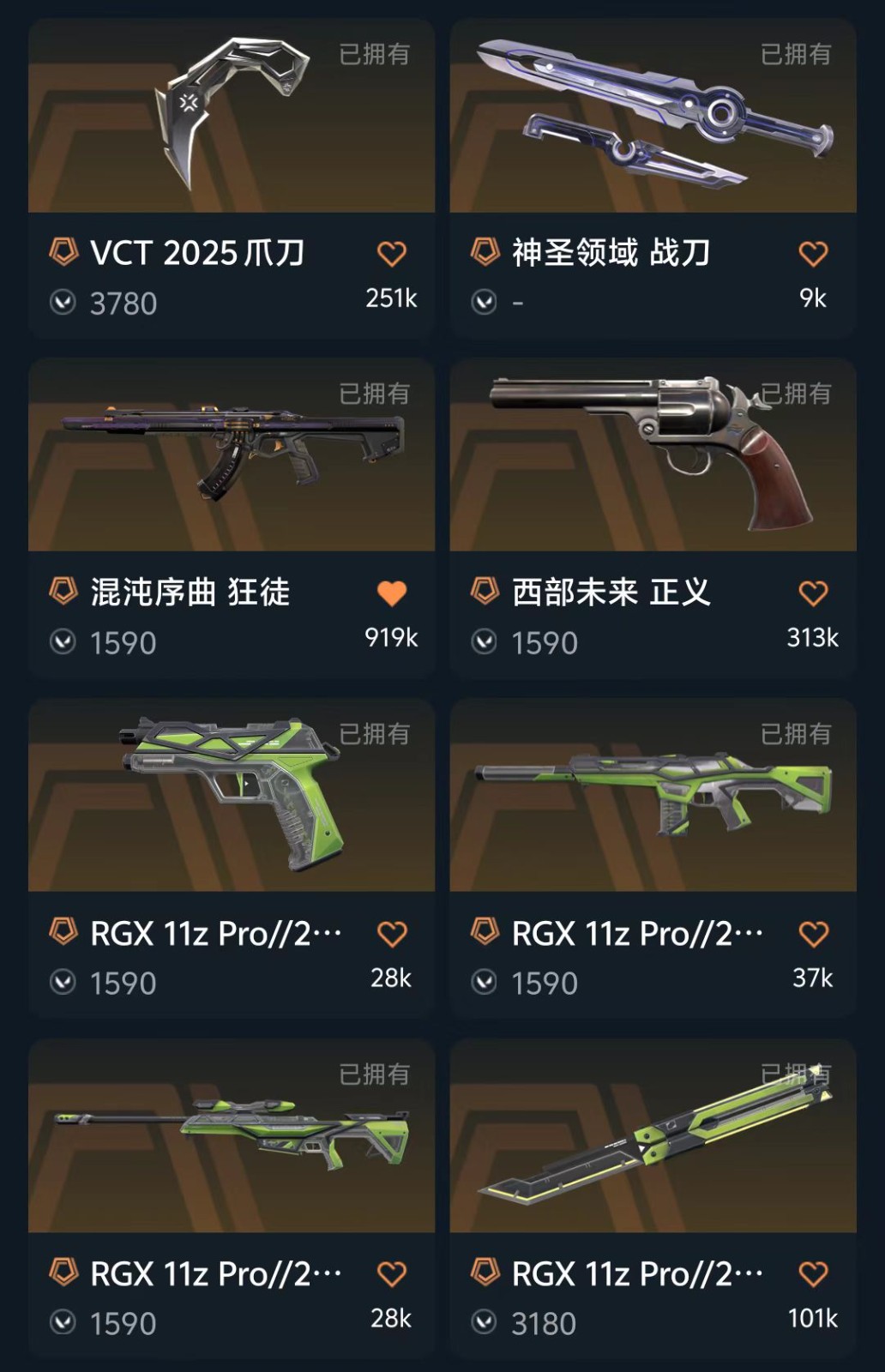 可排位🔥显卡2.0套装🔥VCT2025爪刀🔥混沌狂徒🔥掠夺狂徒🔥离子2.0狂徒