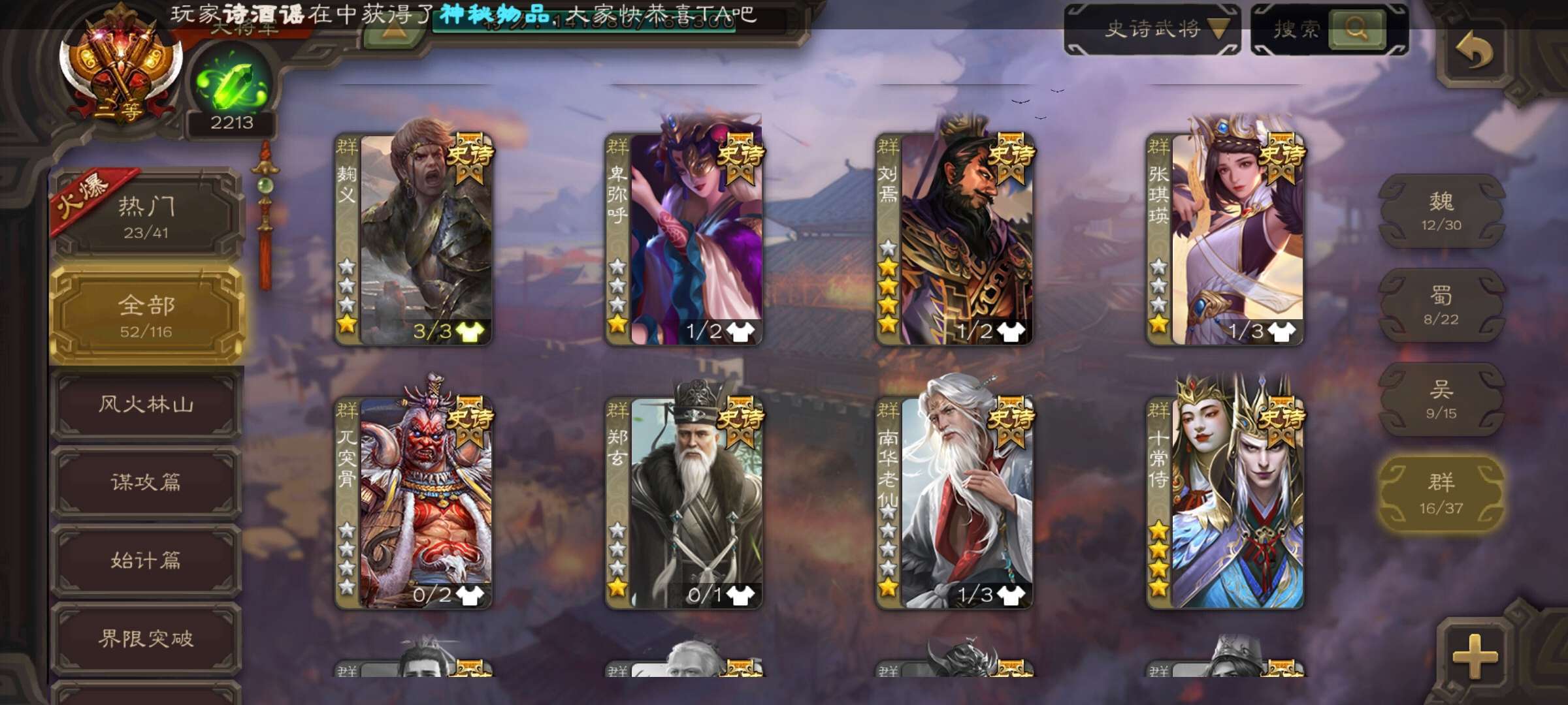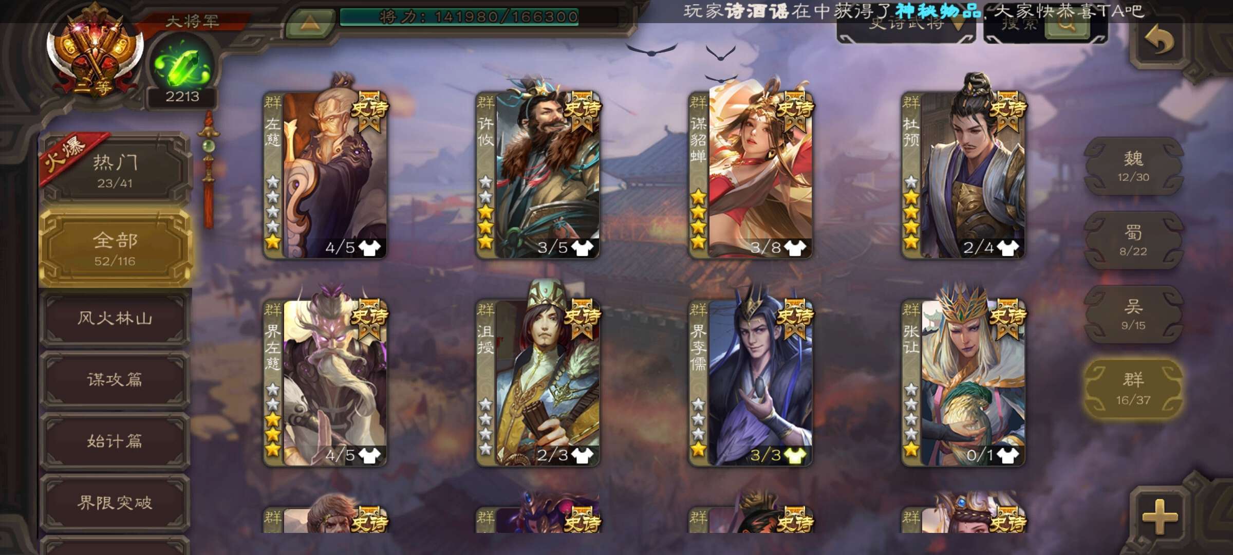 【移动互通版】v13二等大将军⭐逃跑关小黑屋⭐52史诗471皮肤49动皮⭐神荀彧刘焉十常侍文鸯神甘宁神鲁肃神孙策