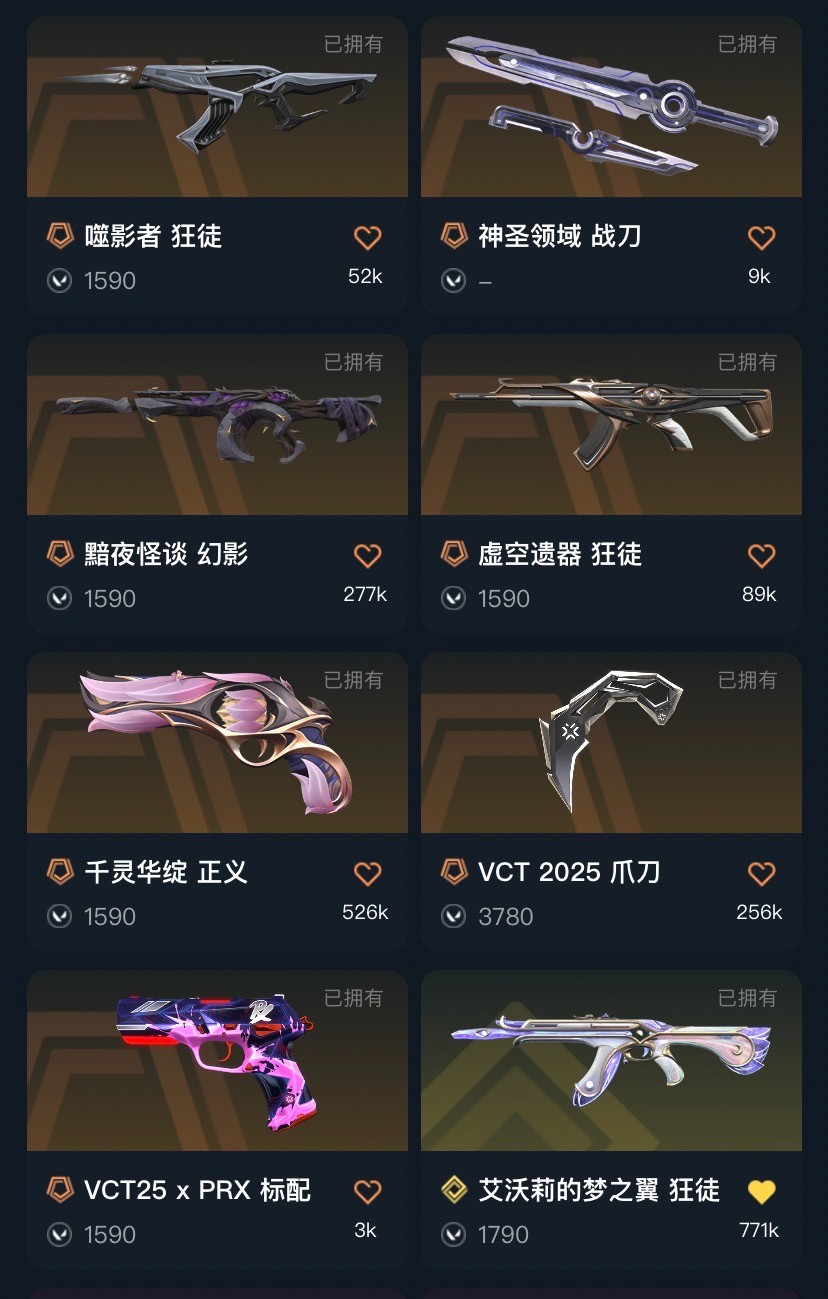 冻结秒解✨可排✨噬影者狂徒✨VCT2025爪刀✨艾沃莉狂徒✨离子/虚空遗器狂徒
