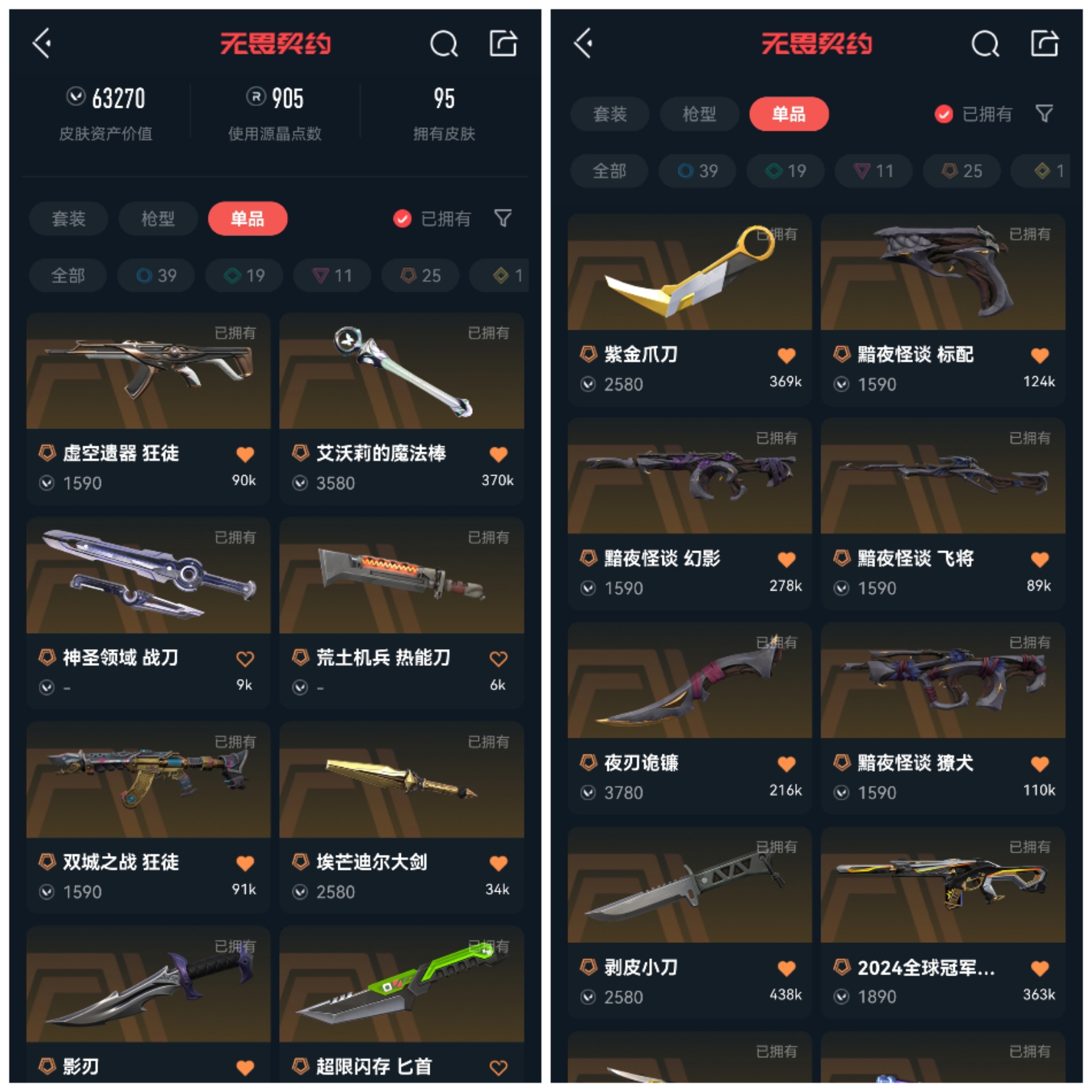 首页 > 租号大厅 > 无畏契约-wegame > wegame/wegame > 可排位6.3w库存虚空遗器⭐24冠军套显卡3.0套❤掠夺套黯夜套❤塑水宗/梦之翼/双城/AK紫金爪刀