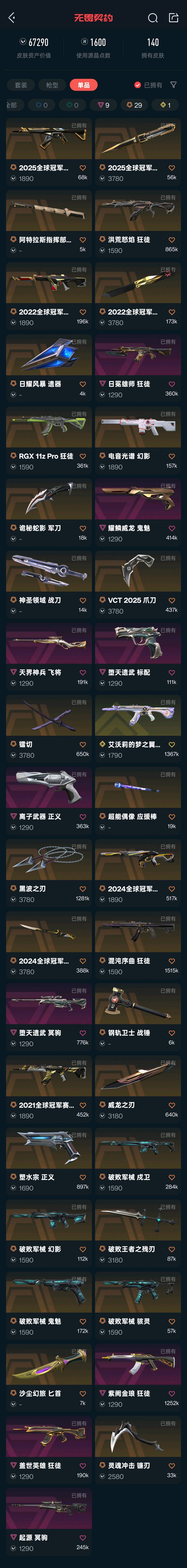 (开G,逃跑必拉黑,家里单开户口本的玩意就别来租号了)130皮/39付费皮/67290vp/1600已用r点/可排位/25冠军套/21冠军ak/24冠军套/22冠军套/显卡ak/电音m4/黑波之刃/镭切/25VCT爪刀/破败套/灵魂冲击镰刀/猫咪ak/混沌ak/流脓ak/紫金ak/狮子ak/堕天标配/堕天冥狙/天界飞将/猴子ak/离子正义/塑水宗正义/耀麟威龙鬼魅/堕天冥狙/起源冥狙;黑波之刃,镭切,威龙之刃,VCT 2025 爪刀,洪荒怒焰 狂徒,紫阙金琅 狂徒,RGX 11z Pro 狂徒,