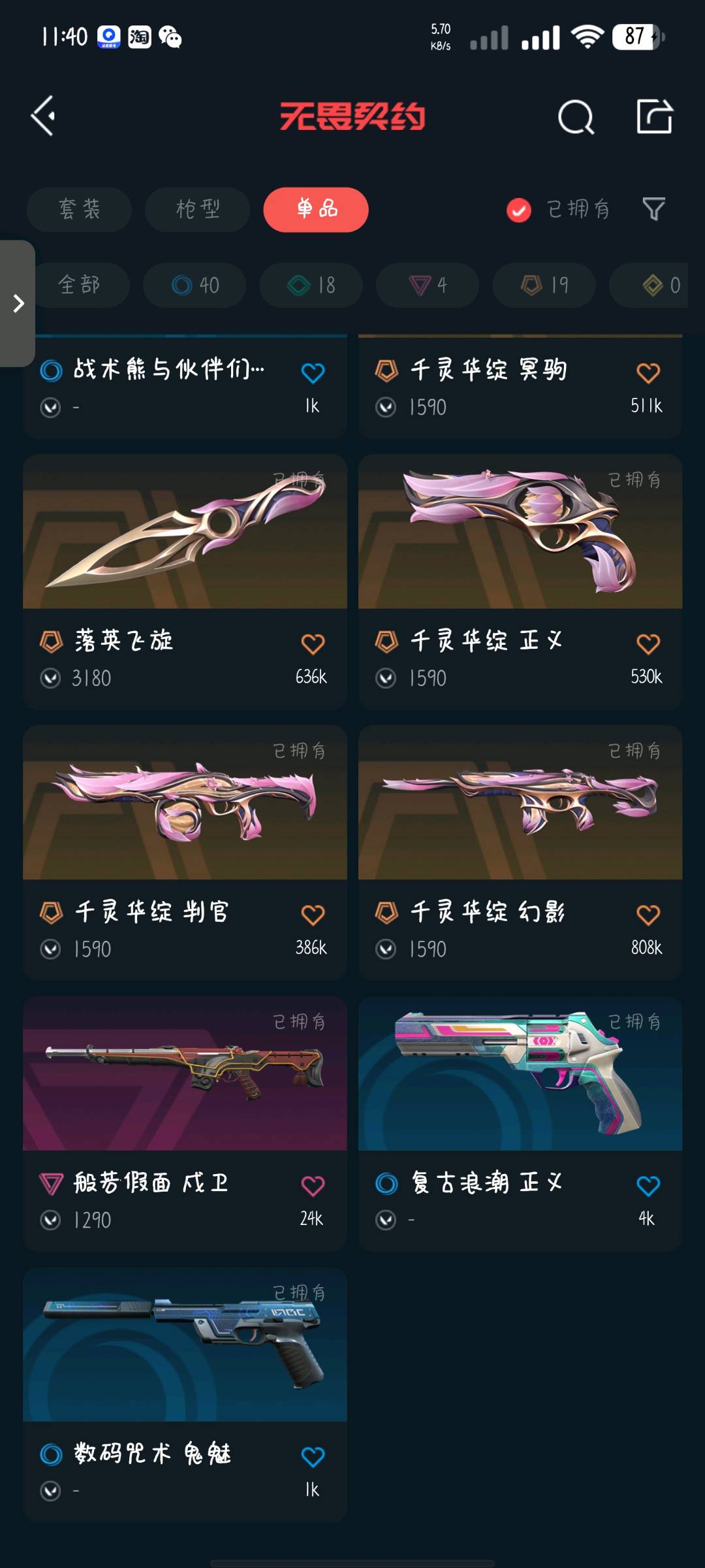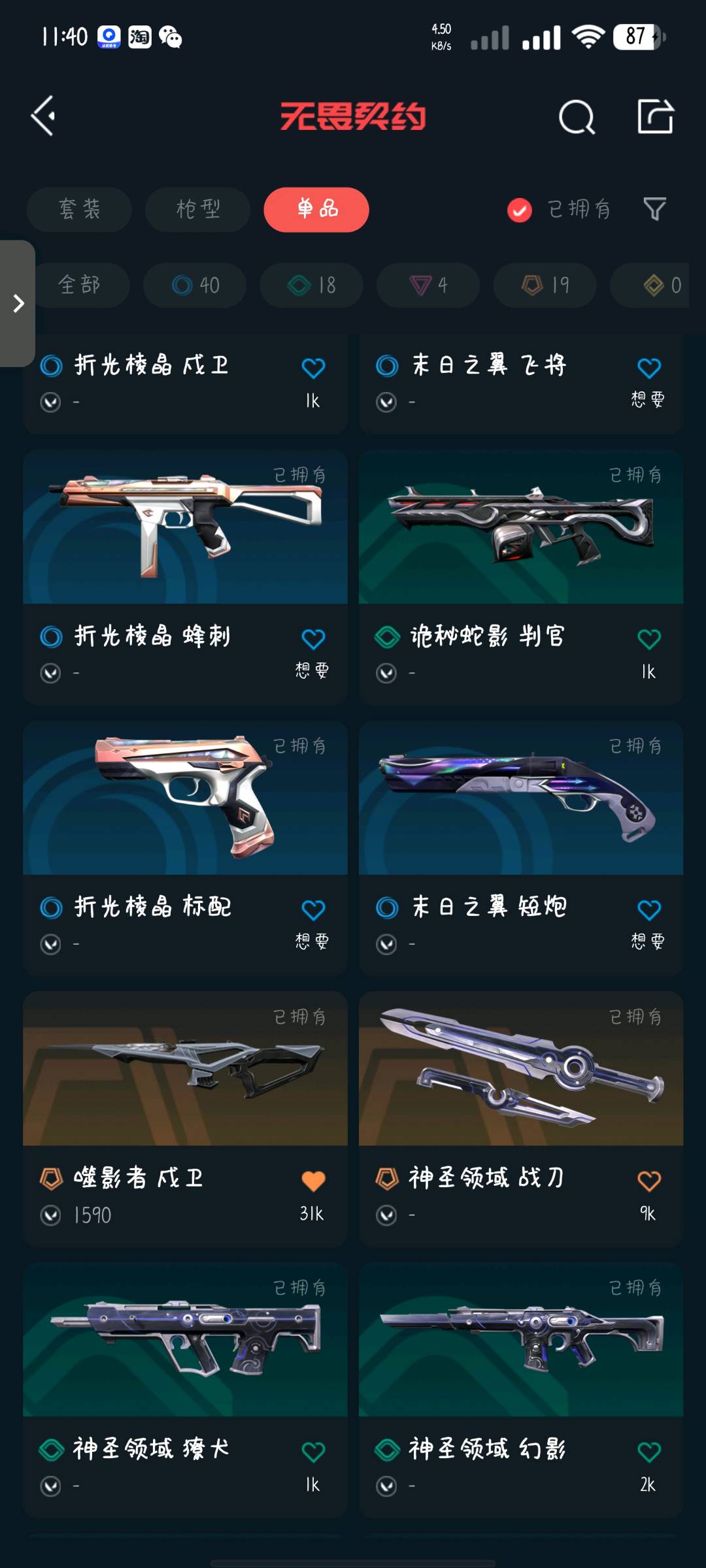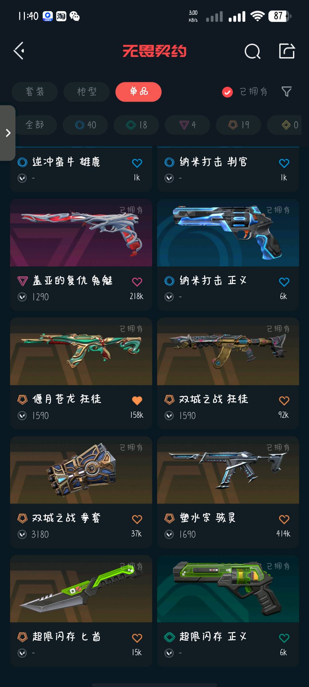 • 武器皮肤数量: 87