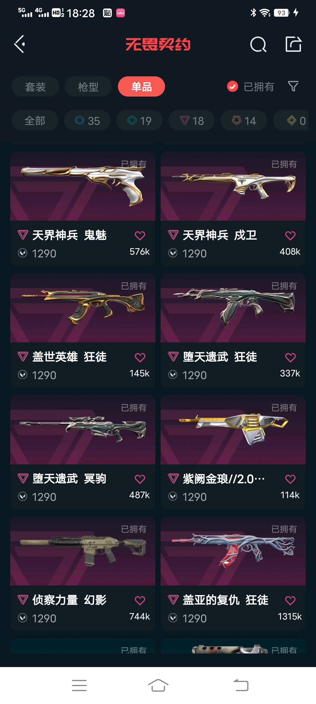 可排位 英雄27 武器皮肤数量86;盖亚的复仇 狂徒,掠影 戍卫,掠影 狂徒,侦察力量 幻影,紫阙金琅 狂徒,天界神兵 戍卫,堕天遗武 狂徒,