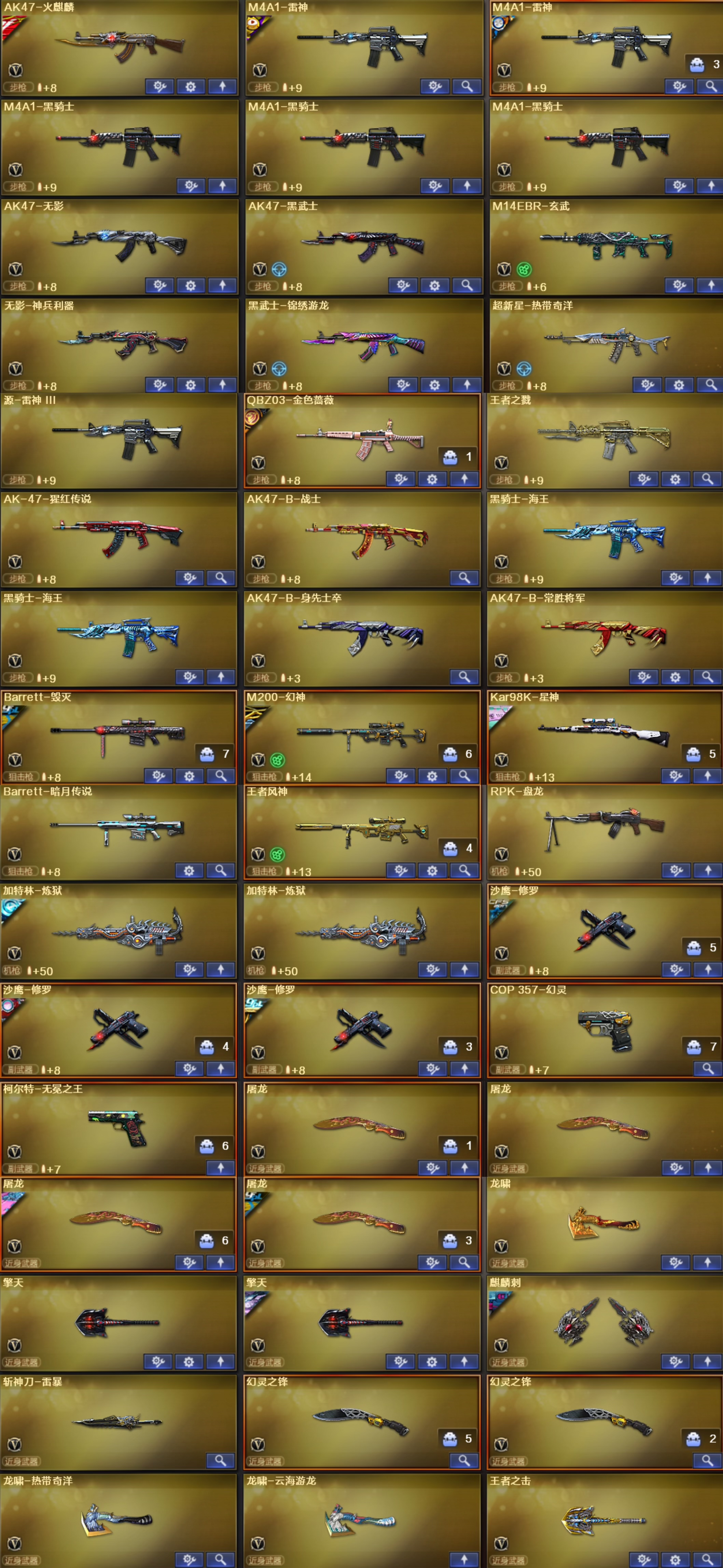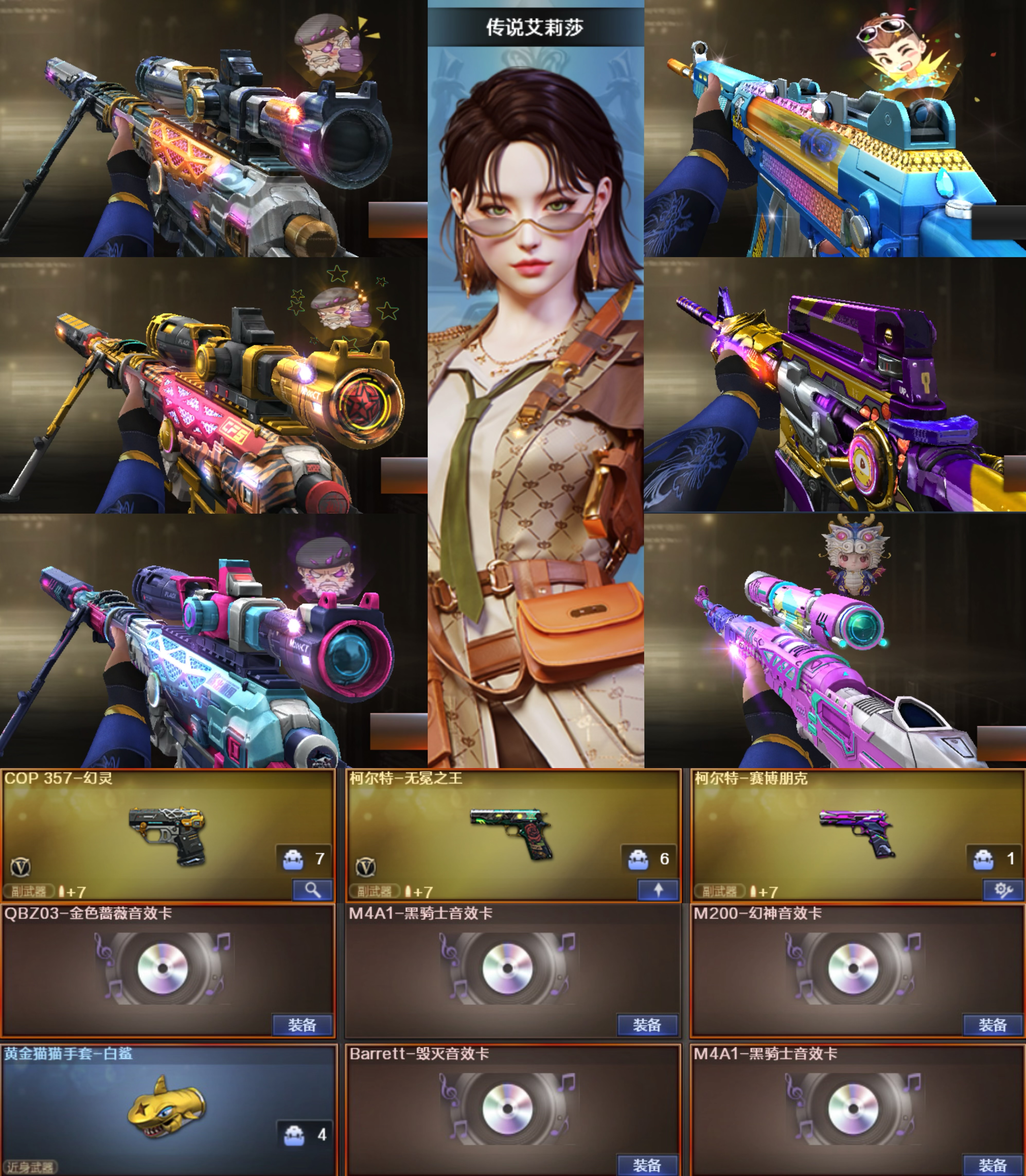 祝各位老板玩得开心 恶意维权永久拉黑;柯尔特-无冕之王,隼,传说艾莉莎,RPK-盘龙,QBZ03-金色蔷薇,M200-幻神,Kar98K-星神,