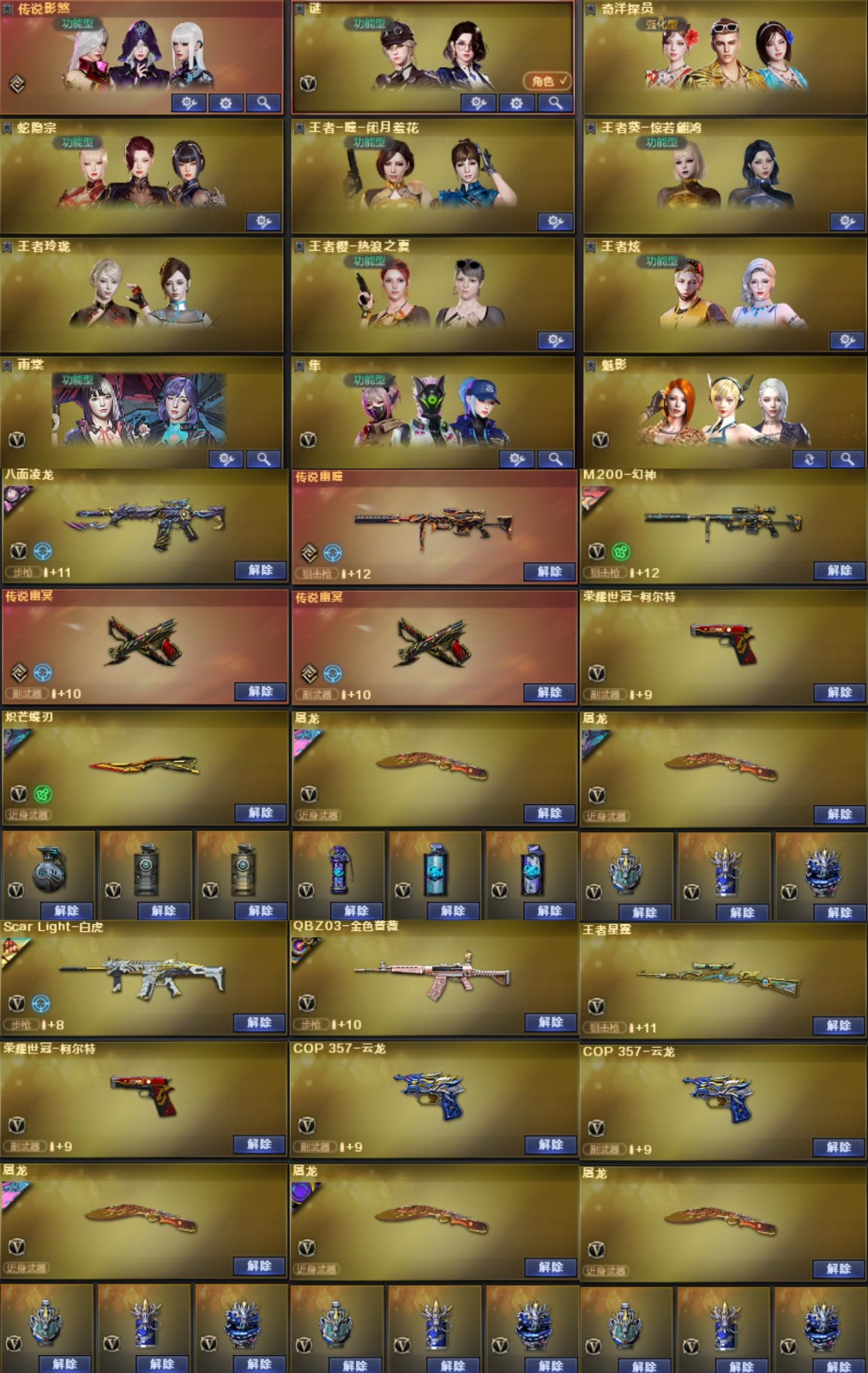 精品爆破生化全装🔥🔥🔥 🔥 5传说/传说幽瞳/传说影煞/传说破晓/传说幽冥*2/幻神/幻神电流骇客皮肤/幻神CFS2022/王者幻神/【八面凌龙全套差个皮肤]/八面凌龙/八面凌龙音效卡/八面凌龙不朽玄君皮肤-封心寒雪皮肤-森林领主皮肤-星守炎龙/M200竞技荣光套/竞技荣光*2/星神炽天使/王者风神白虎白虎音效卡白虎AGCFPLS20冠军/白虎巅峰荣耀皮肤/QBZ天罚/QBZ天罚音效卡/天罚孙权皮肤/QBZ云龙/QBZ金色蔷薇*3/QBZ金色蔷薇音效卡/金色蔷薇破浪逐光皮肤/QBZ巅峰荣耀皮肤/ QBZ银翼/QBZ王者蔷薇/王者星霆/王者白虎/青龙之魄/荣耀世冠柯尔特*2/柯尔特竞技荣光/炽芒蝶刃/炽芒蝶刃破浪逐光皮肤/冠军之刃/【四防已开]/传说影煞/王者瞳闭月羞花/王者葵惊若翩鸿/王者炫/超能女侍觉/【角色]/谜/奇洋探员/蛇隐宗/王者玲珑/王者樱热浪之夏/隼/魅影/0号玩家/游珑儿/朱雀音效卡/极光音效卡/毁灭音效卡/黑骑士音效卡/雷神音效卡/火麒麟拉丝皮/火麒麟白虎/火麒麟新春kwai乐/金色蔷薇拉丝皮/朱雀甜蜜火力皮肤/雷神拉丝皮/雷神脉冲核心/雷神赛博朋克皮肤/雷神CFS十周年纪念皮肤/雷神源计划2.0专属皮肤/黑龙冠军之武/黑骑士CFS2021/黑骑士战神马超/毁灭秦师皮肤/毁灭梦蝶皮肤/毁灭CFS2020/黑武士典韦皮肤/黑龙墨子皮肤/屠龙小叮当皮肤*2/擎天冠军之击/屠龙破浪逐光皮肤/朱雀蛇隐宗/雷神精英刀锋*2/毁灭孙三炮/巴雷特零水下丽影/Cat刀锋/;荣耀世冠-柯尔特,传说幽冥,炽芒蝶刃,Knife-冠军之刃,传说影煞,隼,RPK-盘龙,