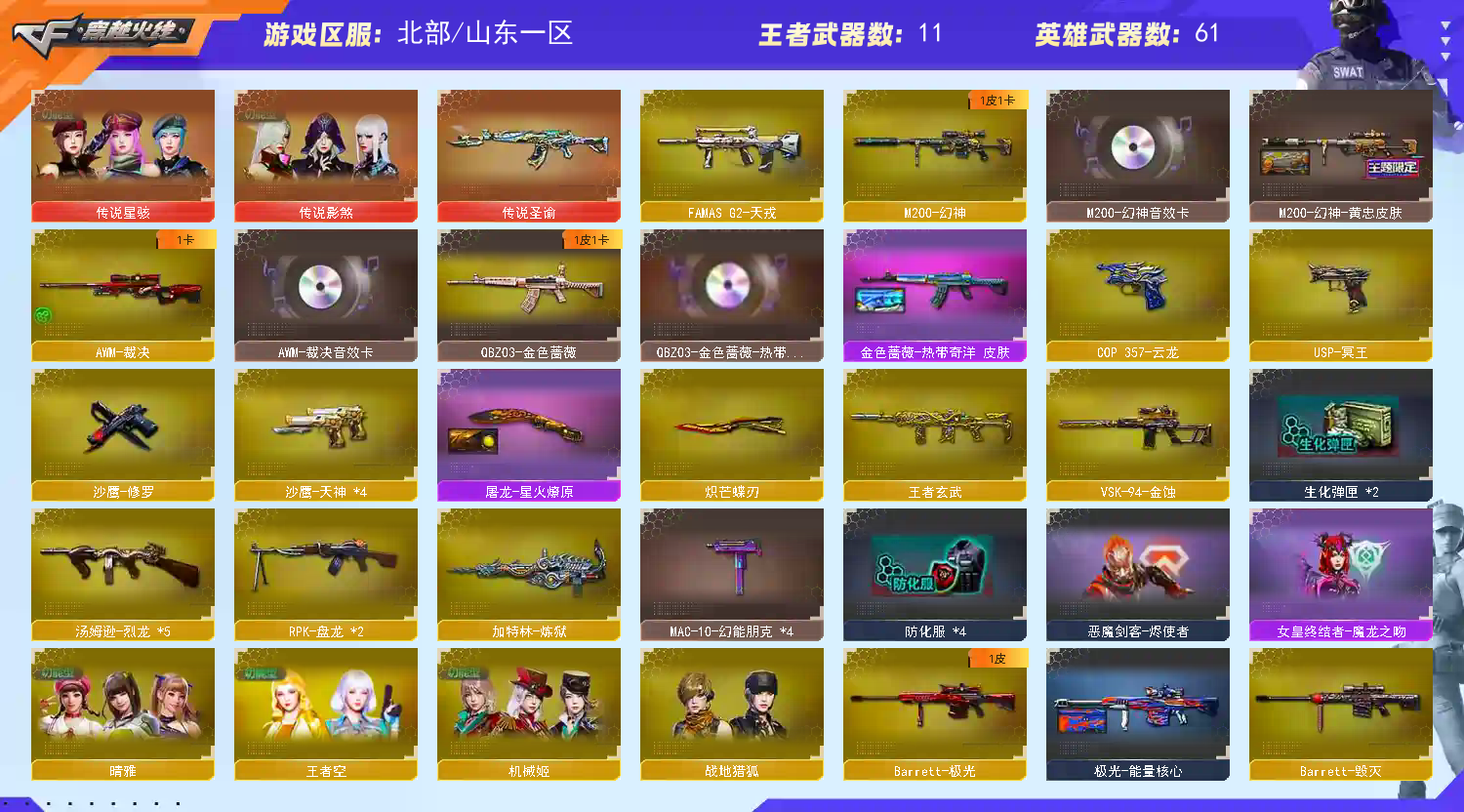 • 游戏区服:穿越火线 / 北部 / 山东一区