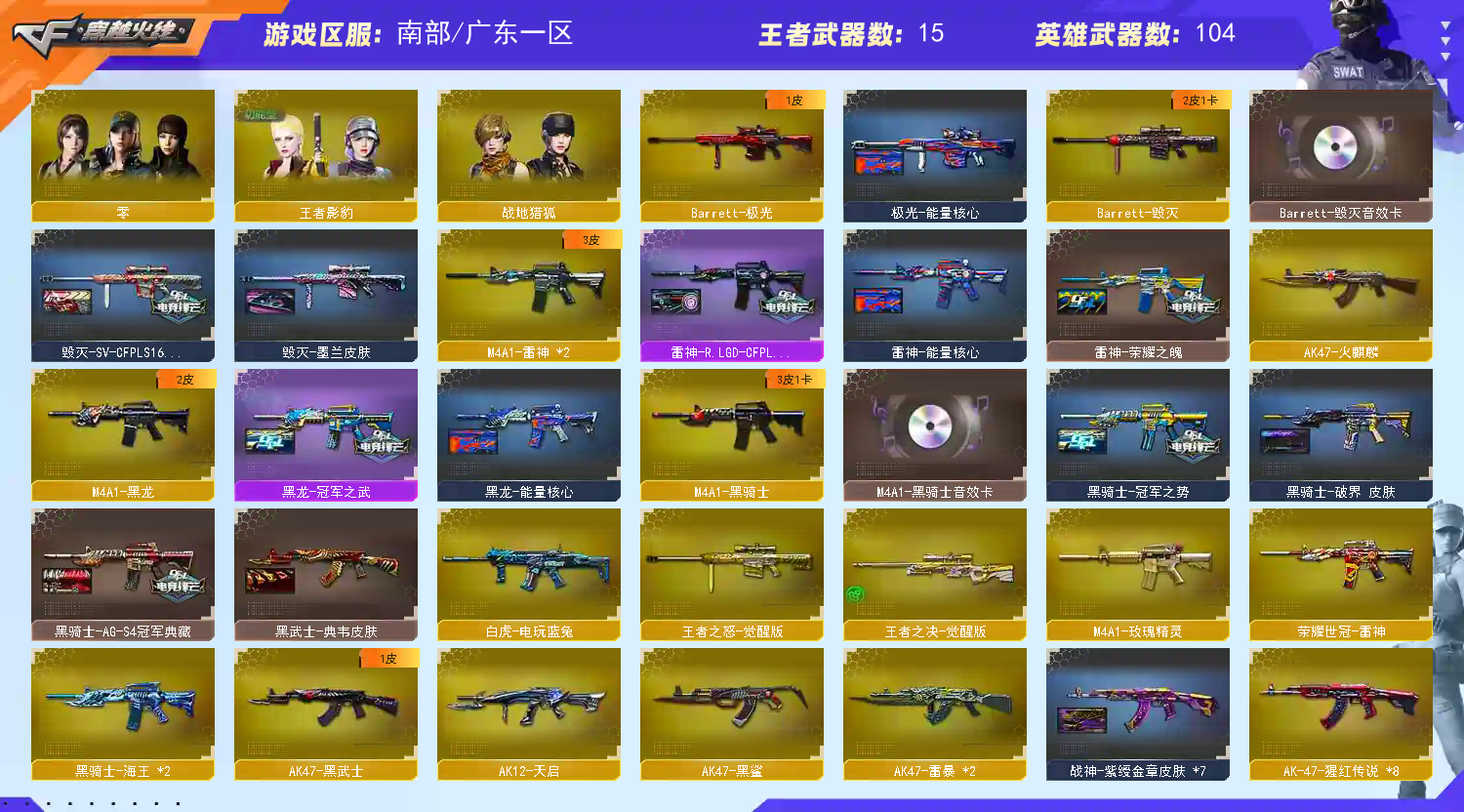 • 游戏区服:穿越火线 / 南部 / 广东一区