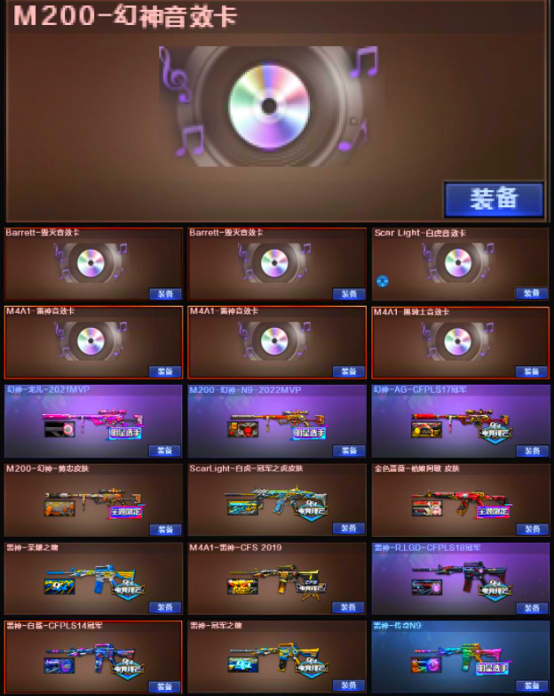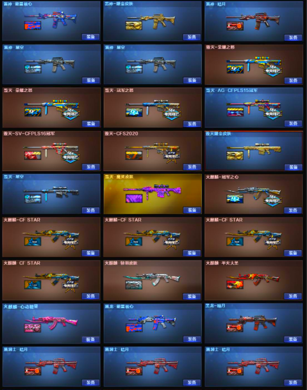 【m200幻神+幻神音效卡+宠儿皮肤+ag冠军皮肤+n9皮肤+黄忠皮肤+柯尔特冠军之特+usp雷暴+炽芒蝶刃+冠军之刃+传说女帝+传说艾莉莎】【m200竞技荣光套装+电竞教官云悠悠】【98k星神+王者星霆】【传说暗裔序列号版+传说梦魇】【白虎+白虎音效卡+冠军之虎皮肤】【qbz03金色蔷薇+呛娘皮肤】【8盘龙+5炼狱+6烈龙+斯泰尔蝴蝶】【6黑骑士】【堕天神套装】【云龙套装】【雷霆套装】【荣耀世冠雷神】【毁灭+毁灭音效卡+冠军之怒皮肤+荣耀之怒皮肤+ag冠军皮肤+sv冠军皮肤】【雷神+雷神音效卡+荣耀之魄皮肤+传奇n9皮肤+冠军之魄皮肤+白鲨s14冠军皮肤+lgd冠军皮肤】【火麒麟+冠军之心皮肤】【黑骑士+黑骑士音效卡】【王者蔷薇 王者之心 王者之魄 王者之势 王者之决 王者之力 王者之怒】【烈火 常胜将军 身先士卒 战神 黑鲨 黑龙 千变 死神 武圣 无影神兵利器 超新星 黑武士 超新星热带奇洋 天龙 极光 裁决 aa12雷霆】——【热门武器/小人呛】【hk417朱雀蛇隐宗 雷神精英刀锋 迷你钢铁终结者 迷你救赎猎手 炽火炎龙 斯泰尔蝴蝶 cat 牛牛ak 】——【柯尔特冠军之特 usp雷暴 cop堕天神*3 cop雷霆 cop云龙 柯尔特竞技荣光 武圣手呛 破空呛刃夜魔 天神 修罗 王者之魂 】——【炽芒蝶刃 龙啸 龙啸堕天神 龙啸热带奇洋 尼泊尔雷霆 麒麟刺 麒麟刺堕天神 擎天 擎天网剧冠军 屠龙 王者云击 王者之啸 斩神刀雷暴 云龙扇】——【堕天神投掷武器套装*7+竞技荣光投掷武器套装*7+雷暴投掷武器套装*4+雷霆投掷武器套装*7+云龙投掷武器套装*7】——【角色】【4防(传说女帝 传说影煞)】【4防(电竞教官云悠悠 鹰 王者春 王者葵貂蝉 王者零国色天香 王者玲珑小乔 王者沙漠玫瑰 王者空 )】【华 雨棠 迷迭香 魅影 炫 樱】;USP-雷暴,柯尔特-冠军之特,炽芒蝶刃,Knife-冠军之刃,传说影煞,传说女帝,电竞教官-云悠悠,
