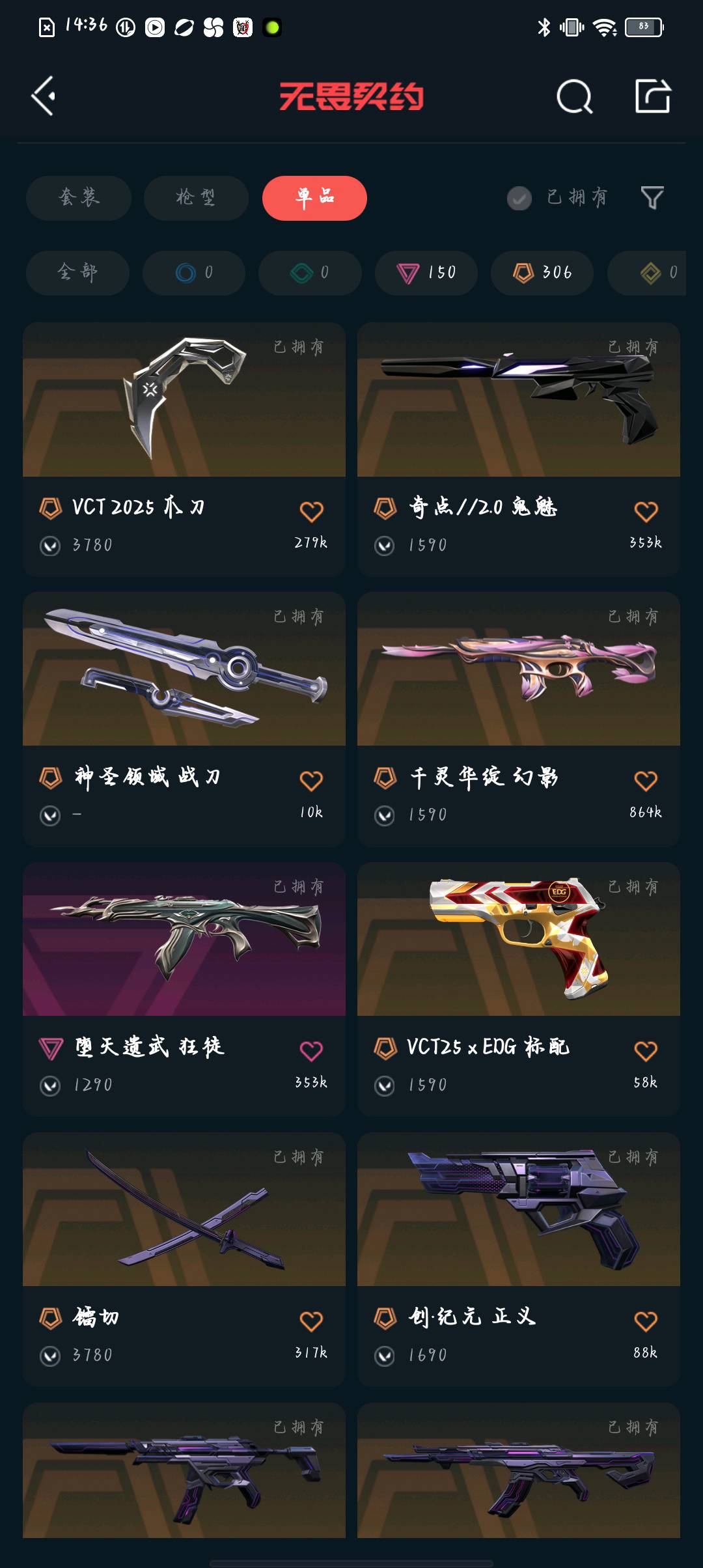 精品小号🔥VCT爪刀炫彩以开🔥创纪元套🔥千灵幻影 奇点鬼魅等热门皮肤