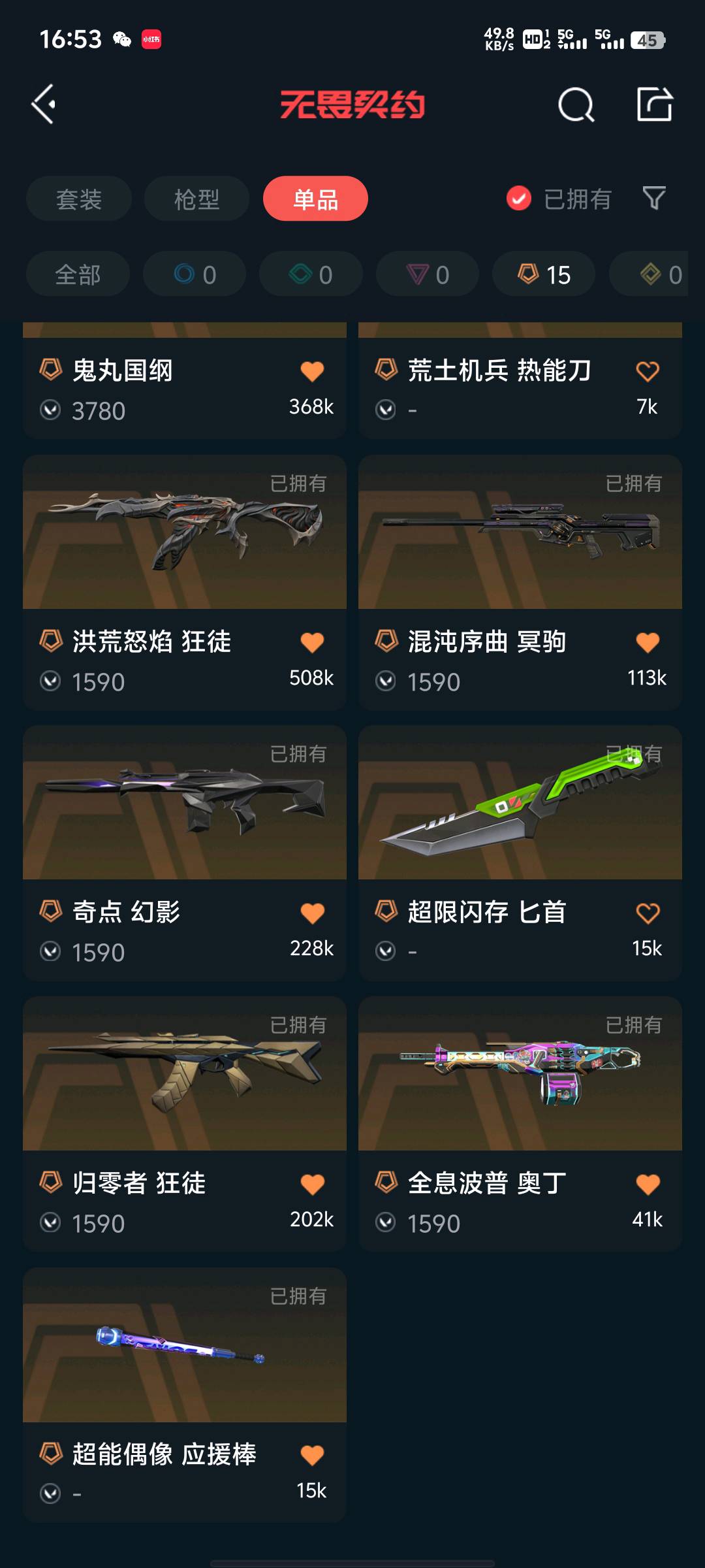 • 传奇数量: 15