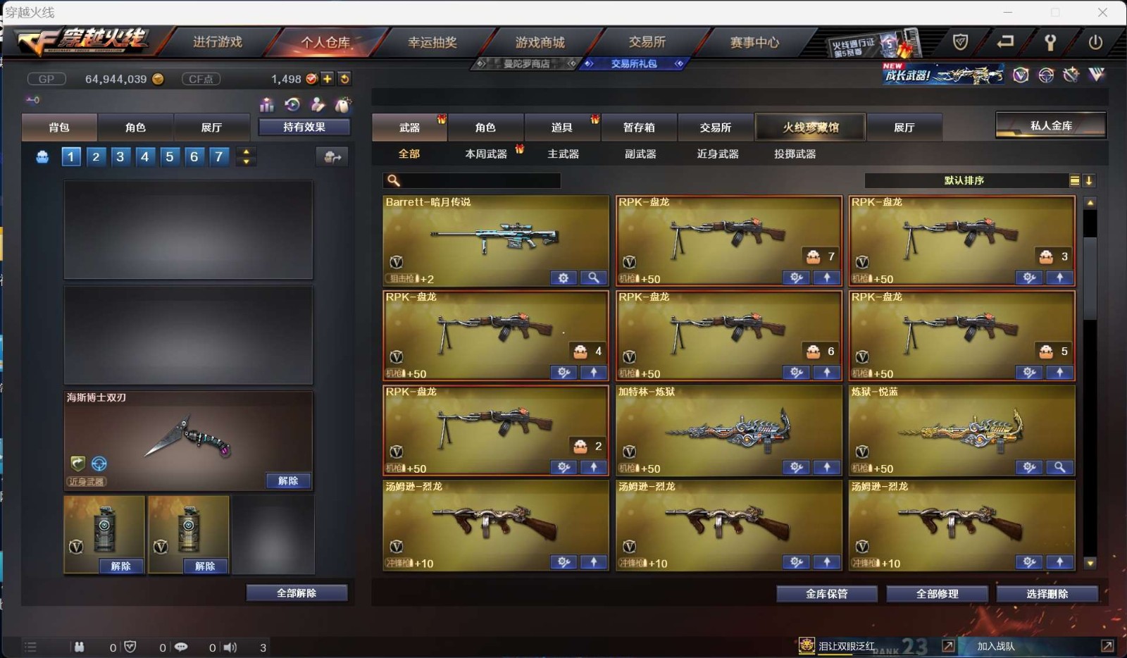 【m200幻神+丹凤皮肤】【qbz03金色蔷薇】【6盘龙+6烈龙+2炼狱+死亡之眼】【堕天神套装】【雷霆套装】【hk417朱雀+芭蕾特朱雀】【毁灭+毁灭音效卡+荣耀之怒皮肤+ag冠军皮肤】【雷神+荣耀之魄皮肤+冠军之魄皮肤+白鲨s14冠军皮肤】【火麒麟+火麒麟音效卡】【黑骑士+冠军之势皮肤】【王者之心 王者之翼 王者之幻 王者之戮 王者之魄 王者之势 王者之武 王者之光 王者之怒】【烈火 天启 战神 黑鲨 黑武士 无影 超新星 黑龙 猎神 千变 龙血 玫瑰精灵 死神 千变 武圣 裁决 天龙 暗月传说 极光 aa12雷霆】——【热门武器/小人呛】【雷神精英刀锋 火麒麟绝技 cat 金色小号 cop旗袍 ak47斯沃特 】——【cop堕天神 cop357雷霆 天神 修罗 王者之灵】——【龙啸 龙啸堕天神 尼泊尔雷霆 麒麟刺 麒麟刺堕天神 擎天 擎天网剧冠军 屠龙 王者之锋 斩神刀雷暴】——【堕天神投掷武器套装*6+雷暴投掷武器套装+雷霆投掷武器套装*9】——【角色】【4防(王者葵貂蝉 王者魅影)】【迷迭香 葵 炫 樱 王者樱热浪之夏 堕落女神】;RPK-盘龙,QBZ03-金色蔷薇,M200-幻神,