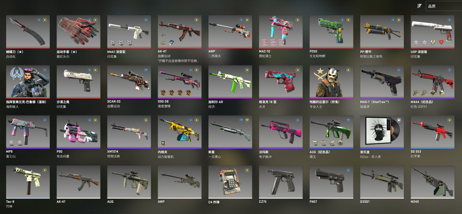 令牌看描述和截图✅完美绿5e⭐顶级自动化蝴蝶⭐猩红手套⭐awp二西莫夫⭐印花集套⭐AK血腥⭐主战齐