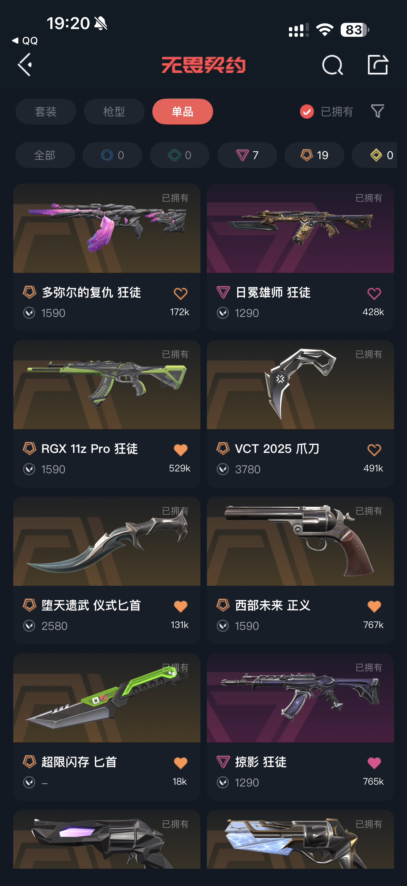 可排位 混沌 盖亚 21冠军狂徒 砰砰 奇点幻影 威龙之刃 归零大狙 天界鬼魅禁止使用外挂否则需承担相关法律责任;威龙之刃,VCT 2025 爪刀,盖亚的复仇 狂徒,掠影 狂徒,侦察力量 幻影,RGX 11z Pro 狂徒,天界神兵 戍卫,