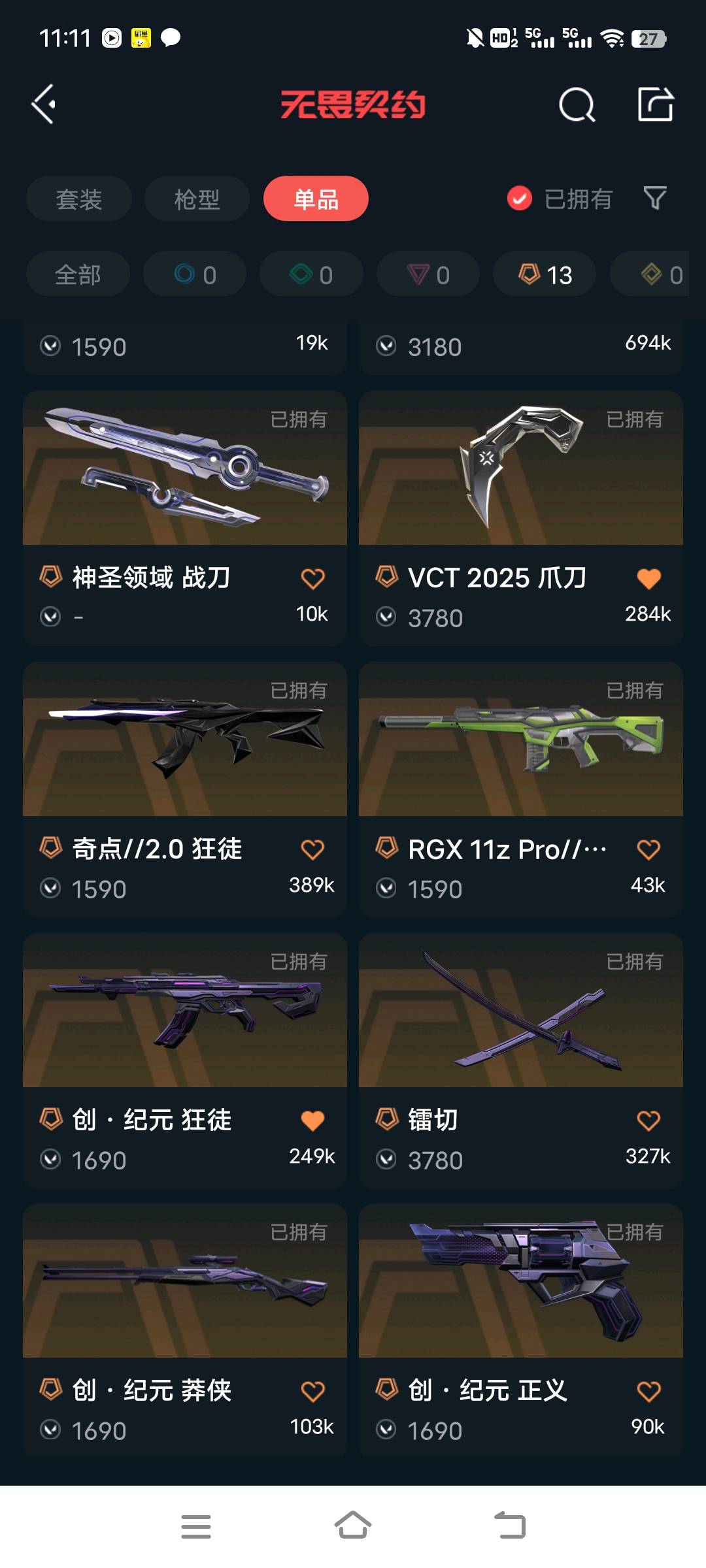• 传奇数量: 13