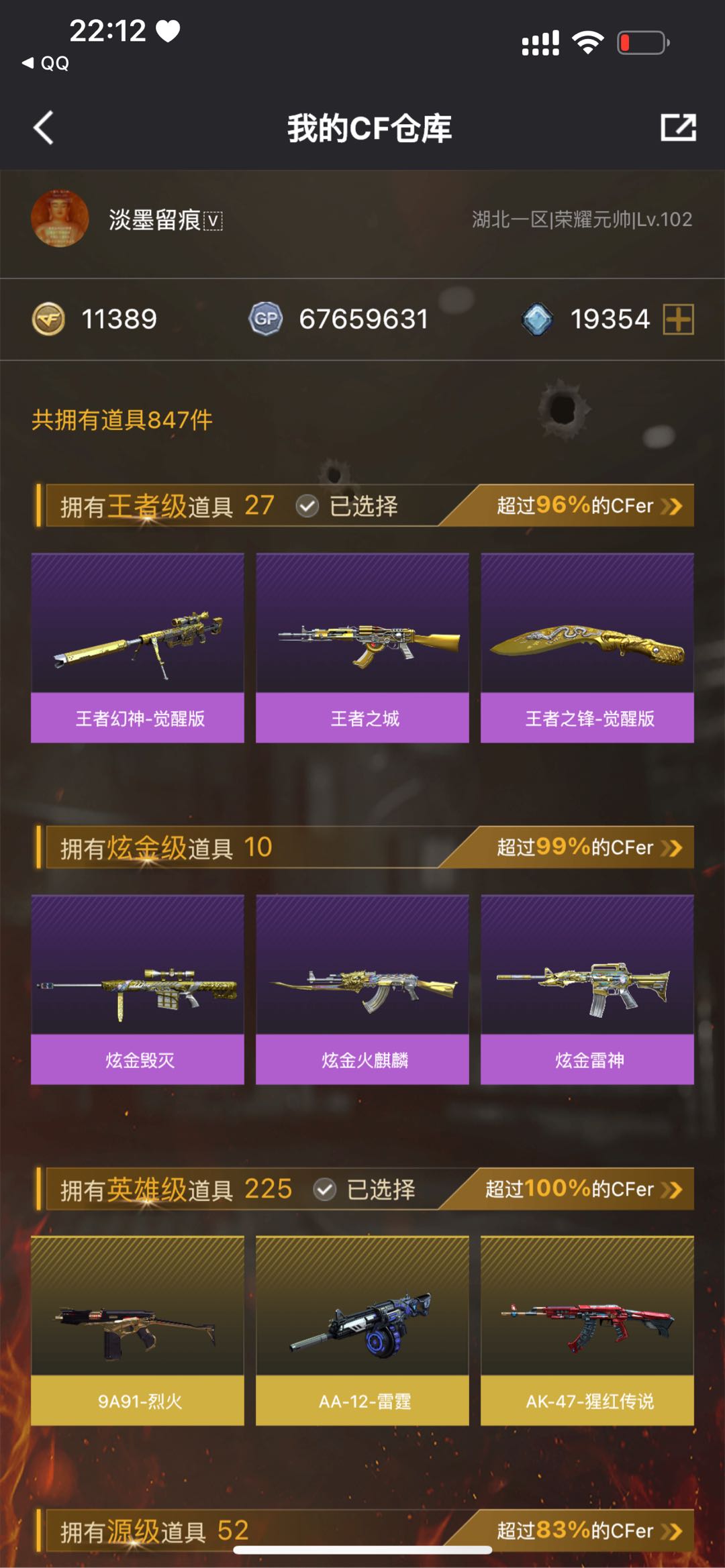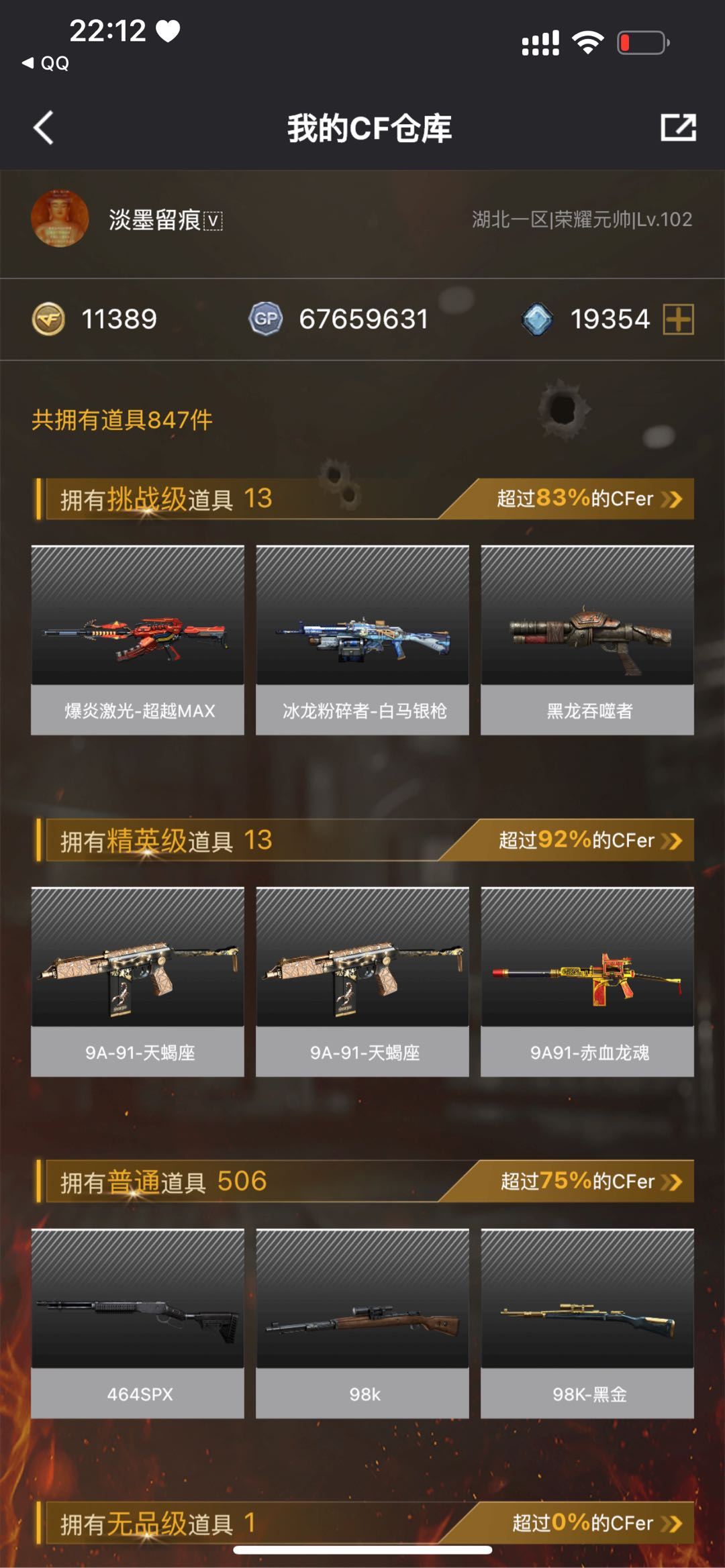 • 游戏区服:穿越火线 / 电信区 / 湖北一区