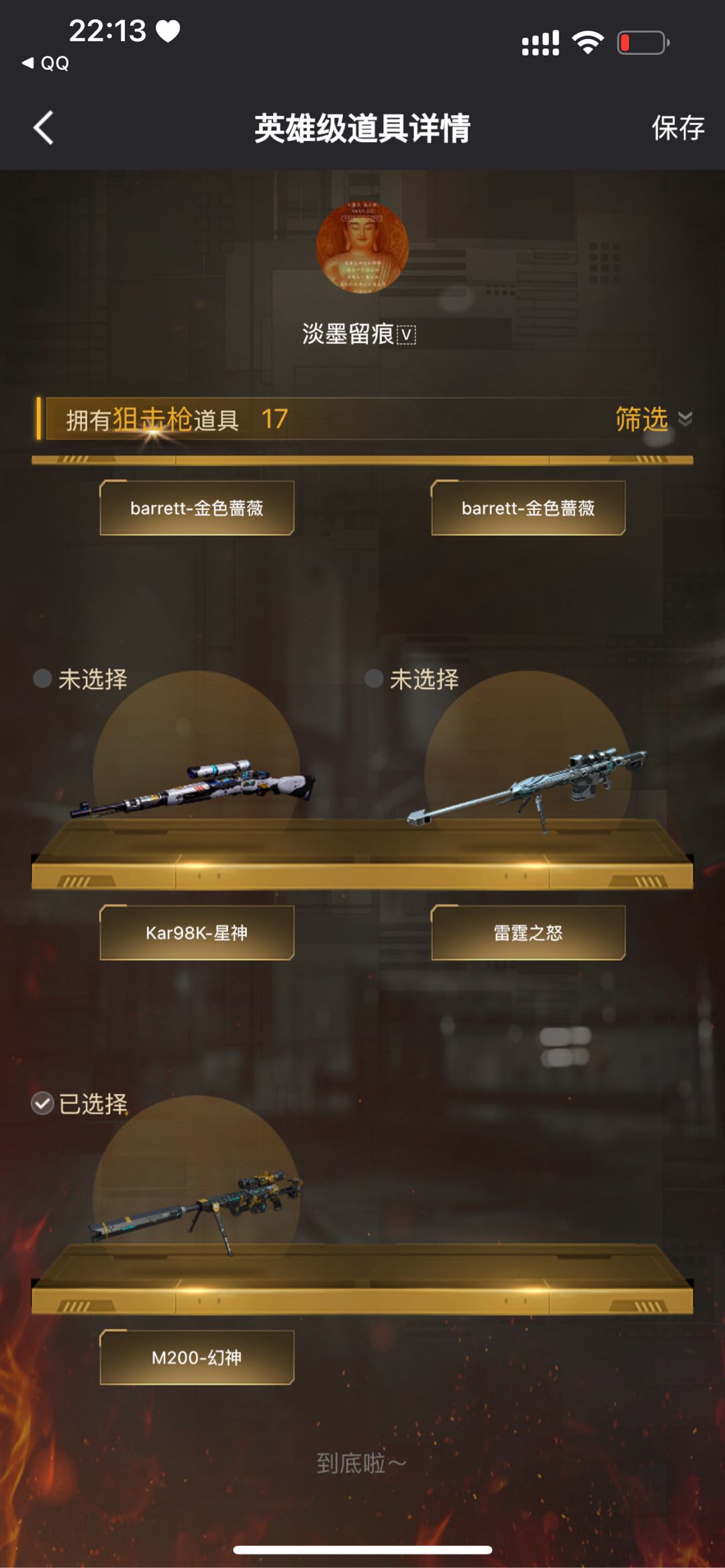 此号充值10几w开挂必定查ip起诉;USP-雷暴,RPK-盘龙,QBZ03-金色蔷薇,M200-幻神,Kar98K-星神,