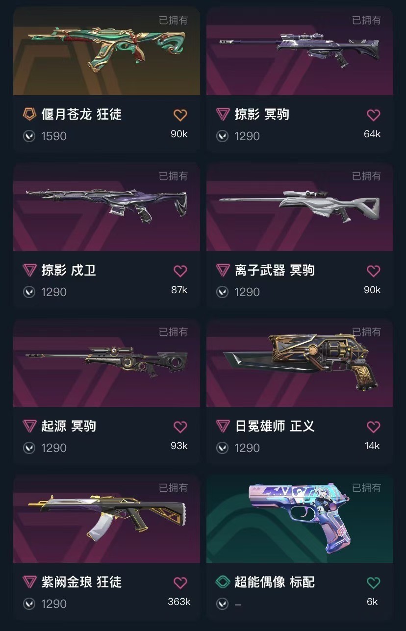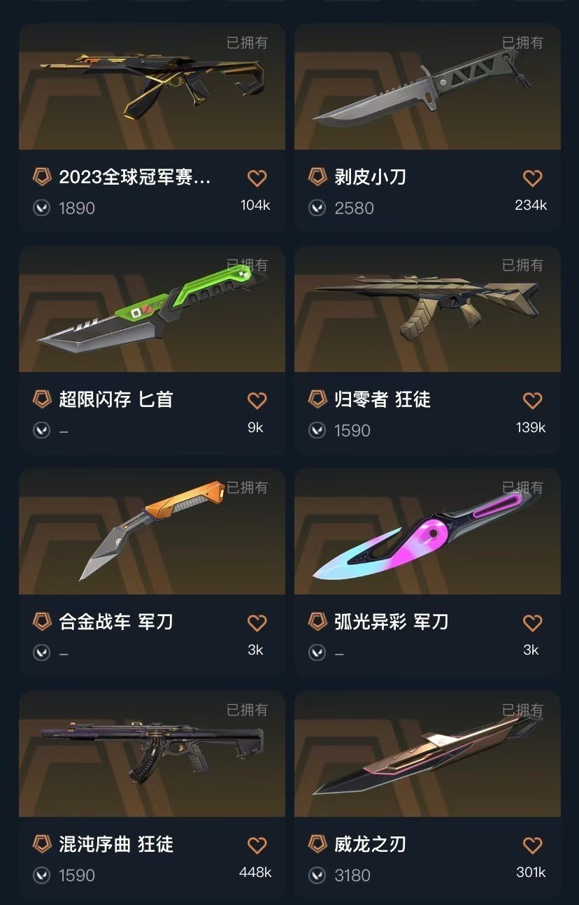 冻结秒解🔥可排⭐混沌序曲狂徒❤️23冠军套❤️紫金/紫阙金狂徒❤️剥皮小刀❤️掠影戍卫