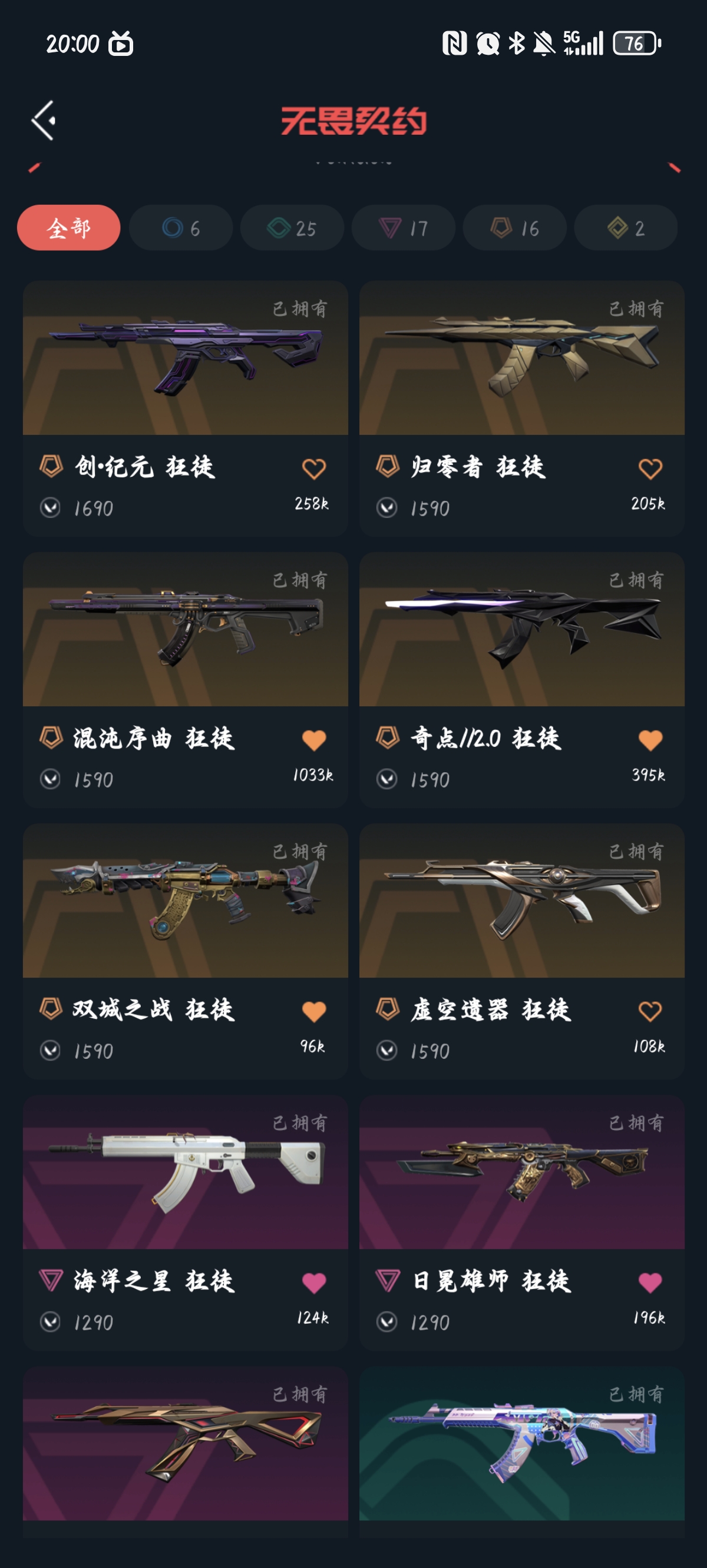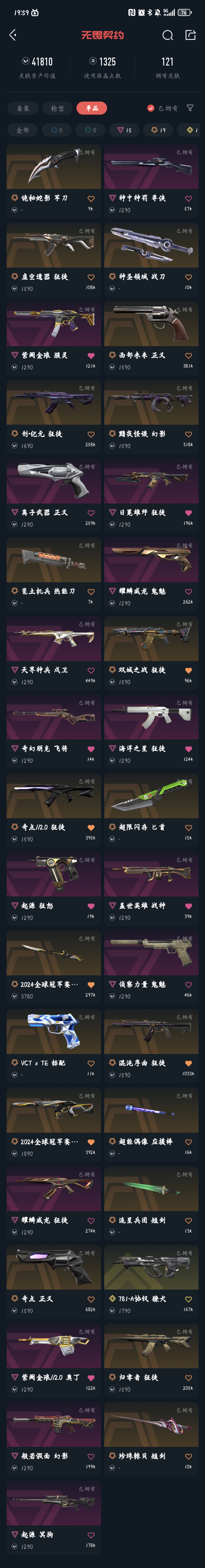 121皮肤/13把狂徒皮肤/三把幻影/24冠军套装/西部正义;虚空遗器 狂徒,天界神兵 戍卫,混沌序曲 狂徒,2024全球冠军赛 幻影,紫阙金琅 骇灵,起源 冥驹,西部未来 正义,