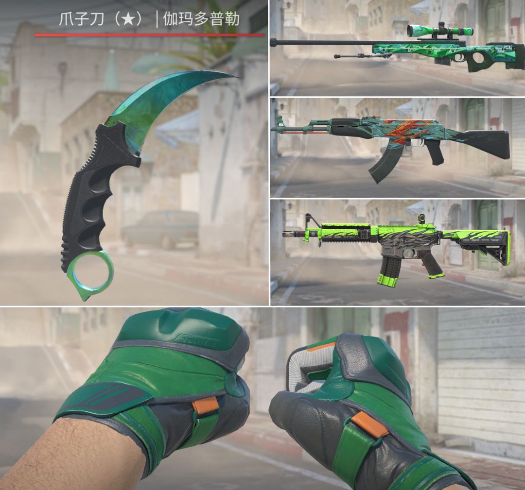 完美B+丨爪子刀伽玛多普勒丨崭新玳瑁丨破浪狂飙M4丨AK深海复仇丨一击碧命AWP丨满配绿色套