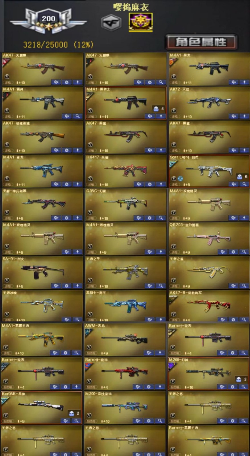 ★收藏好评! 由于异地登录保护机制,部分客户在使用客户端自动上号时会出现密码错误,注意本号密码不会错误,请多尝试5-6次!本账号已经过虚拟财产,请各位科技大神高抬贵手。请素质租号,文明游戏,谢谢大家配合!!;USP-雷暴,柯尔特-冠军之特,电竞教官-云悠悠,QBZ03-金色蔷薇,G36C-幻影,M200-幻神,Scar Light-白虎,