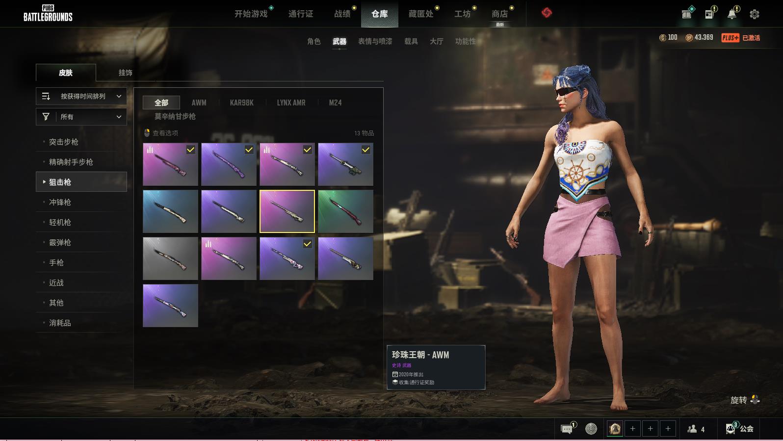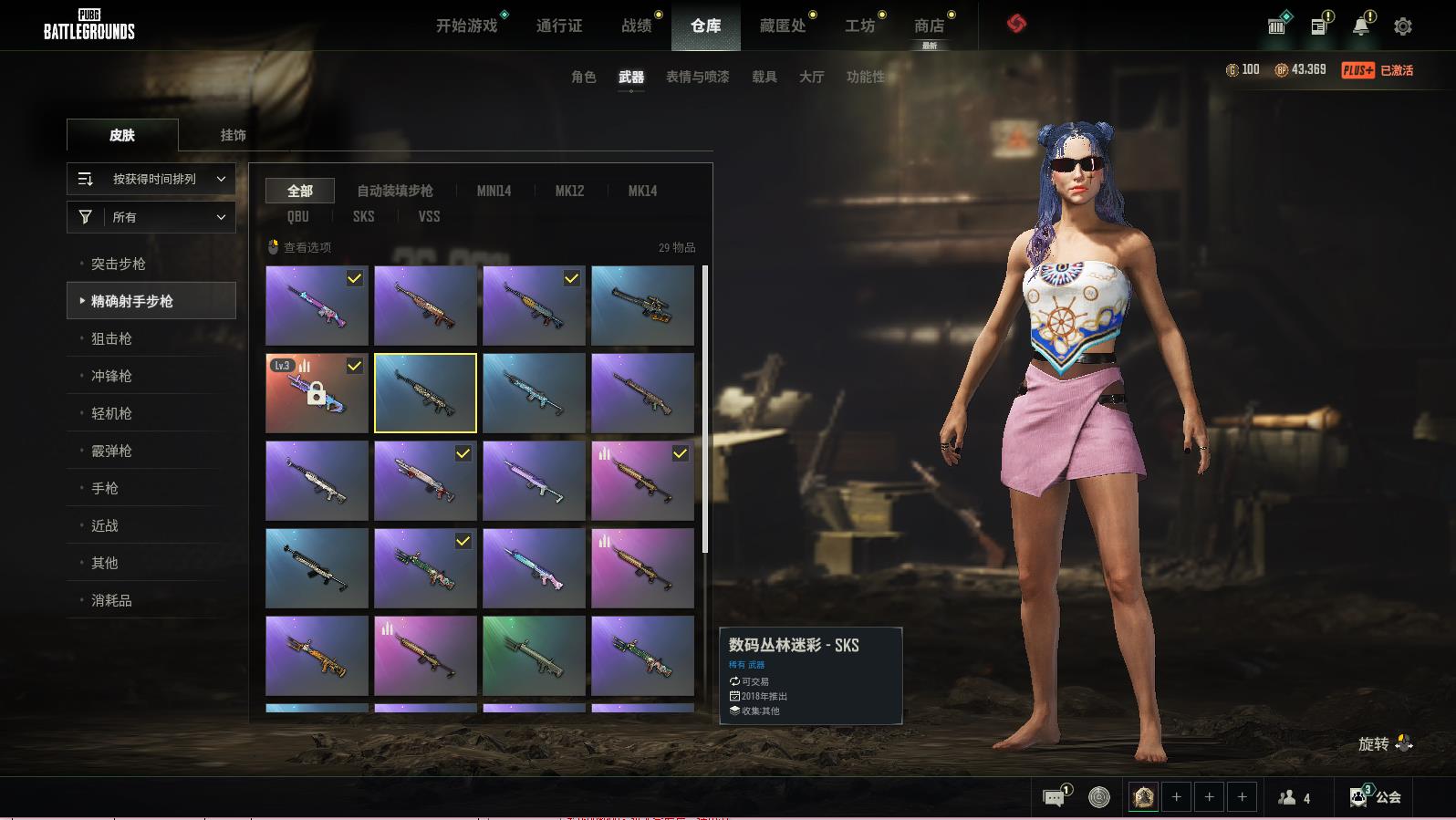 PUBG豪华版满级生存可排位,魔咒之力-MK12;黄道猎手-M416;彩虹之上-K2;弥诺陶洛斯-MINI14;粉梦长眠-M24;金色落叶-KAR98K;珍珠王