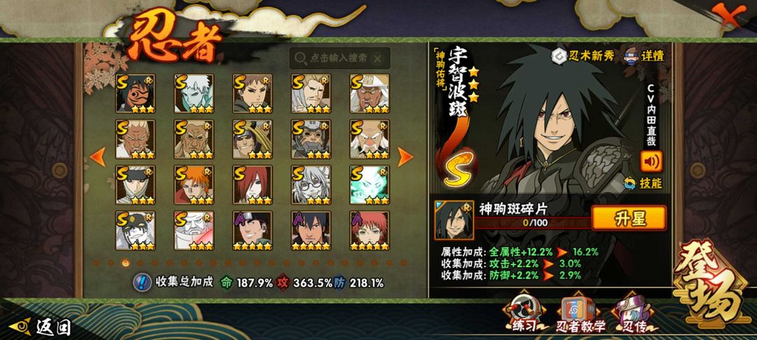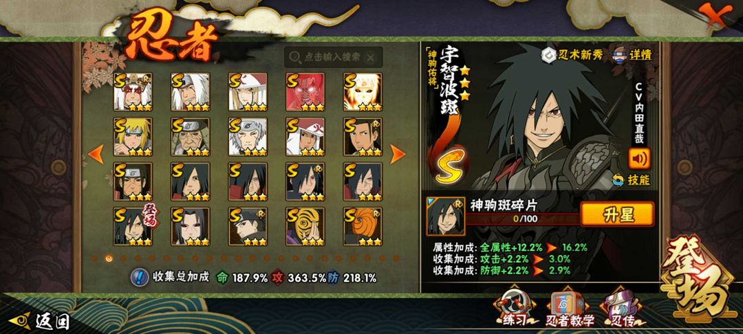 十尾带土♈金身水门♈天道超♈须佐卡卡西♈424忍♊神驹斑♈秽土斑♊3800W♈全通灵⭐57s