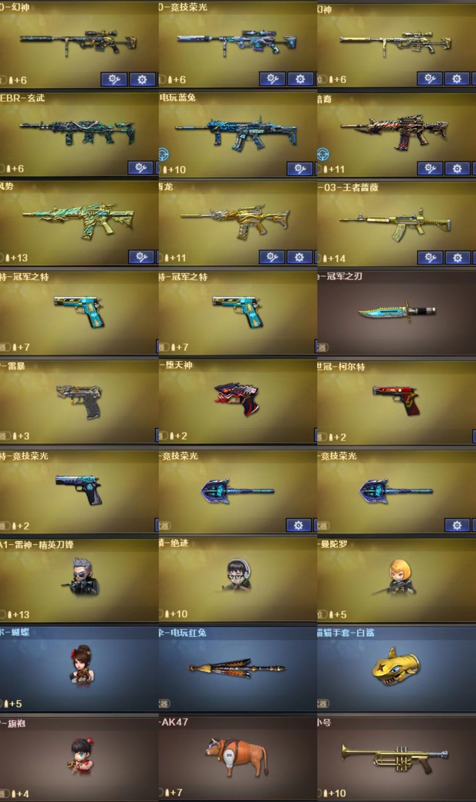 103v 幻神3皮❤电流骇客.青鹤.2022+音效❤冠军之特*2.刃.薇+音效❤USP-雷暴+COP-堕天神+荣耀世冠-柯尔特❤6烈龙+斯泰尔-蝴蝶❤传说暗裔/玄武/王者幻神/白虎-电玩/竞技荣光套/毁灭-荣耀.耀金.星空.魔灵+音效/雷神-荣耀.宠儿+音效/火麒麟-巅峰荣耀.AG.STAR.雷神.轻羽+音效/黑骑士-冠军.2021.电玩青兔.耀金+音效/修罗-冠军.STAR/屠龙-荣耀/龙啸-冠军/云悠悠/王者凌霄/魅影/职业选手/樱-战斗天使/王者零-传说之路/零/Vip6;USP-雷暴,荣耀世冠-柯尔特,柯尔特-冠军之特,Knife-冠军之刃,电竞教官-云悠悠,RPK-盘龙,QBZ03-金色蔷薇,