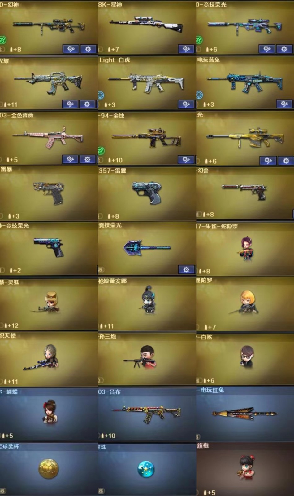 176v 幻神-宠儿曹操.N9.巅峰荣耀+音效❤星神-AG冠军.漫游+音效❤蔷薇-斗鱼+音效❤白虎-霓虹机甲❤USP-雷暴+沙鹰-幻兽+COP-雷霆❤6盘6烈+斯泰尔-蝴蝶️❤金蚀❤极光+音效/天罚+音效/传说光耀/白虎-电玩蓝兔/竞技荣光套/荣耀世冠-火麒麟/王者-火魄.之光.心.翼.幻.魄.力.怒.魂.刺.锋.击.啸/毁灭-AG冠军.2020.风暴.星空.耀金.魔灵.青帝.梦蝶+音效/雷神-斗鱼.宠儿.AG冠军.虎将.新春神龙.动感闪耀.维纳斯.星空.化蛇.源计划2.0专属+音效/火麒麟-AG.STAR.传奇.心动糖果.轻羽/黑骑士-地狱火.白马银枪.破界+音效/黑龙-冠军之武/修罗-冠军/屠龙-荣耀/荒漠琉璃/雨墨/云悠悠/王者-葵-貂蝉.瞳-闭月羞花.玲珑-小乔.零-传说之路/修道士/月兔特工/乔伊教练/零-水下丽影/葵/樱/4套雷暴/1套幻兽8音效/Vip6;USP-雷暴,电竞教官-云悠悠,RPK-盘龙,QBZ03-金色蔷薇,M200-幻神,Scar Light-白虎,Kar98K-星神,