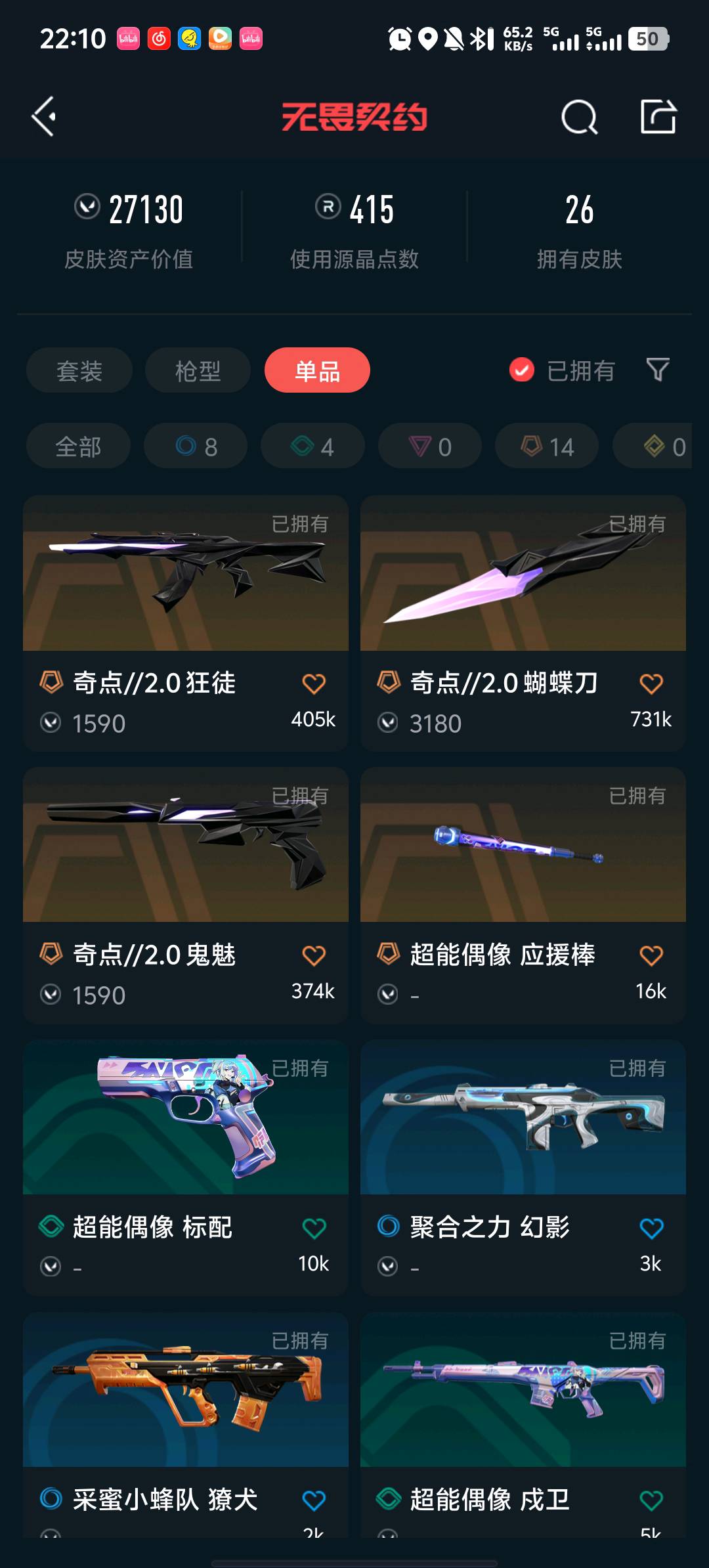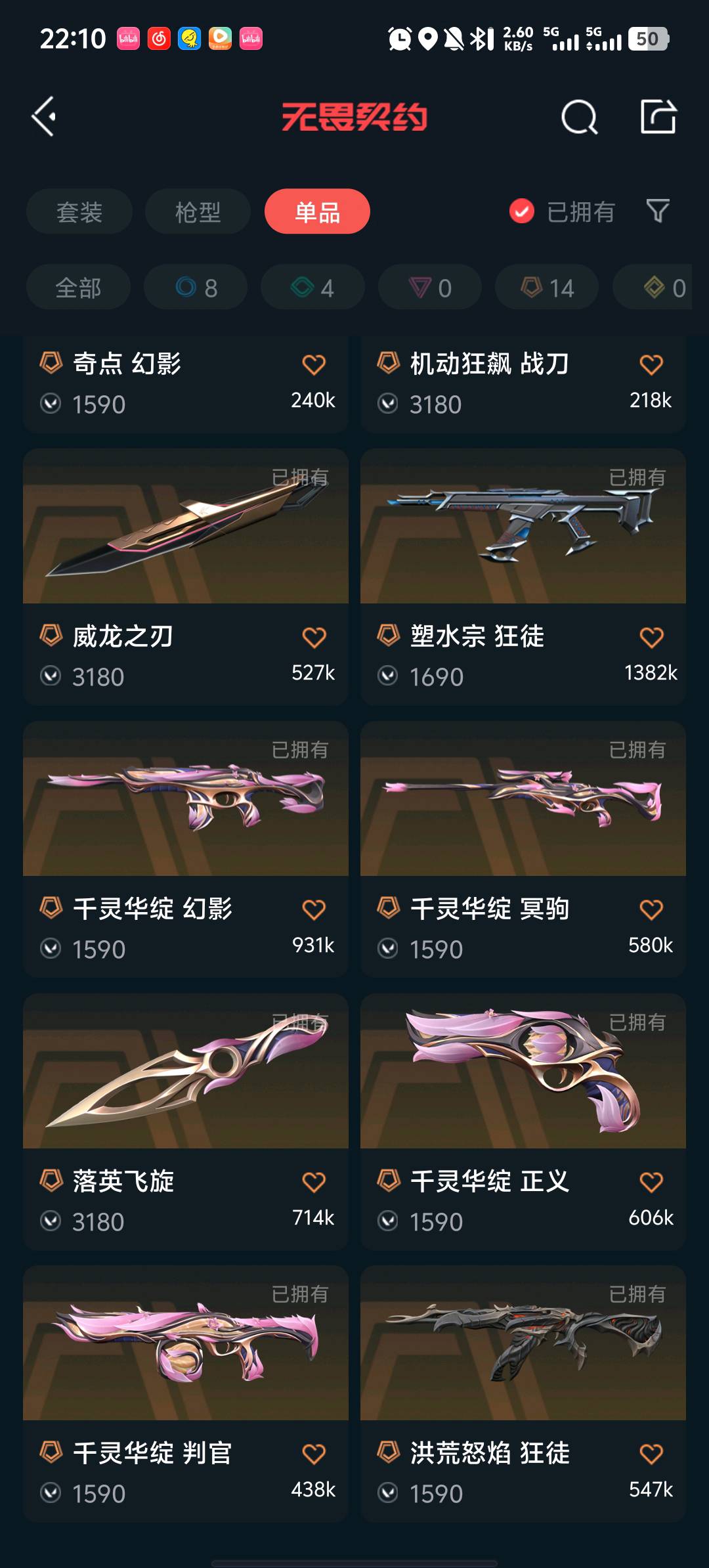 首页 > 租号大厅 > 无畏契约-wegame > wegame/wegame > 千灵华绽全套,奇点2.0全套,塑水宗ak,威龙之刃,机动狂飙战刀,奇点蝴蝶刀,流脓ak,奇点幻影