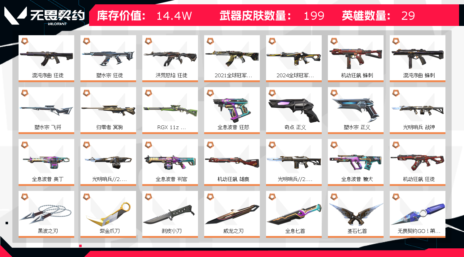 • 皮肤资产价值: 144040
