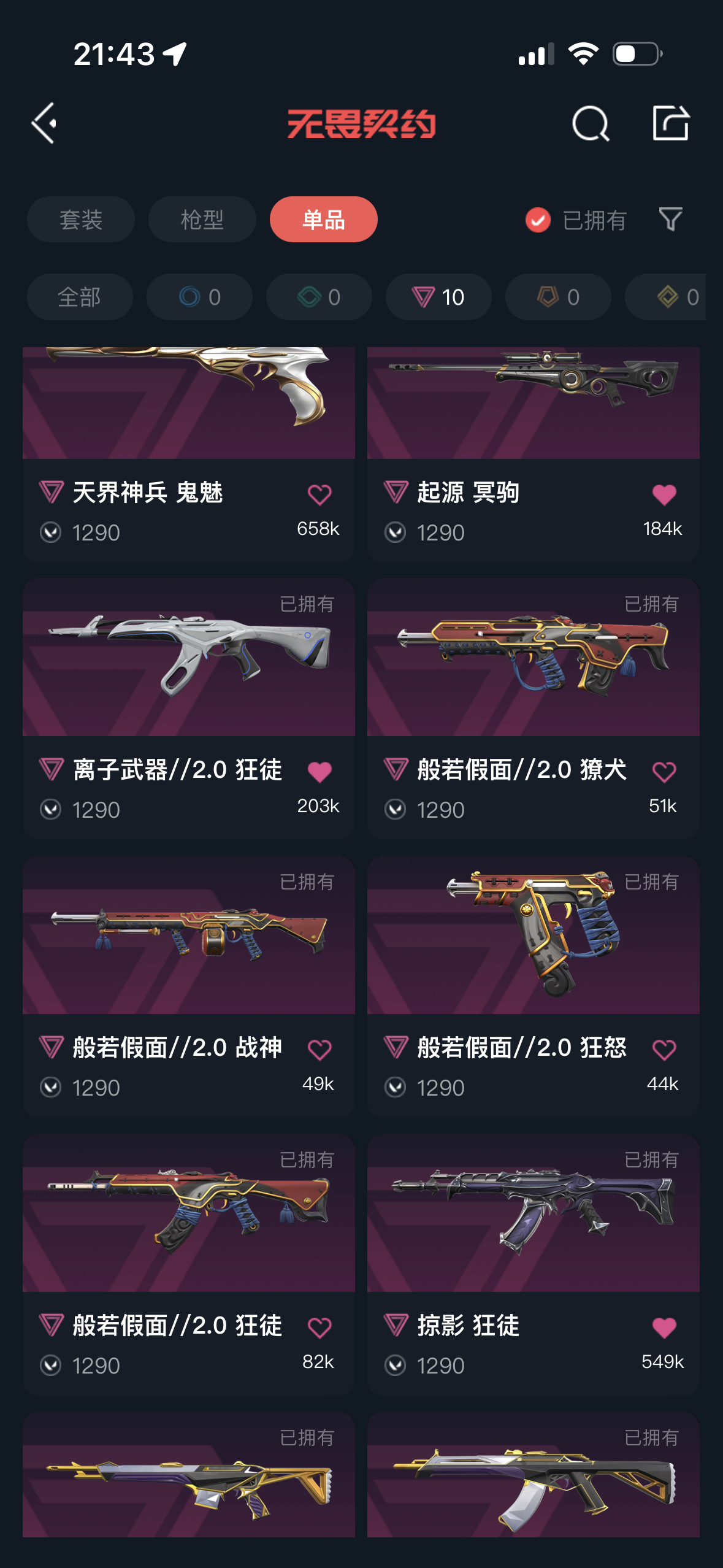 奇点ak,侦查蝴蝶,紫金戍卫,显卡莽侠,起源喷;西部未来 奥丁,起源 雄鹿,掠影 狂徒,侦察力量 幻影,紫阙金琅 狂徒,离子武器//2.0 狂徒,起源 冥驹,